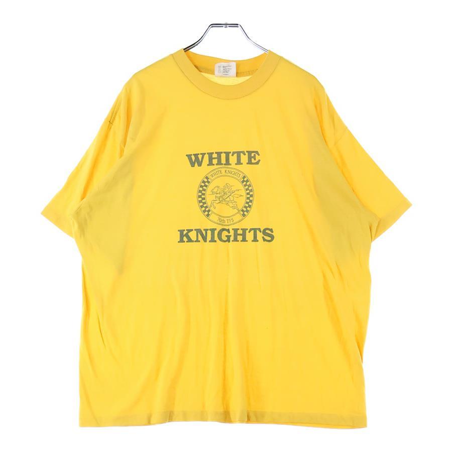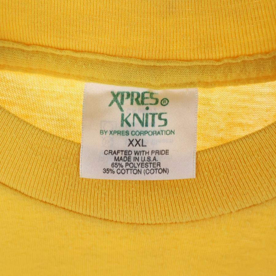 [モデル]80-90s XPRES KNITS 染み込みフロントプリントシングルステッチクルーネック半袖Tシャツカットソー イエロー