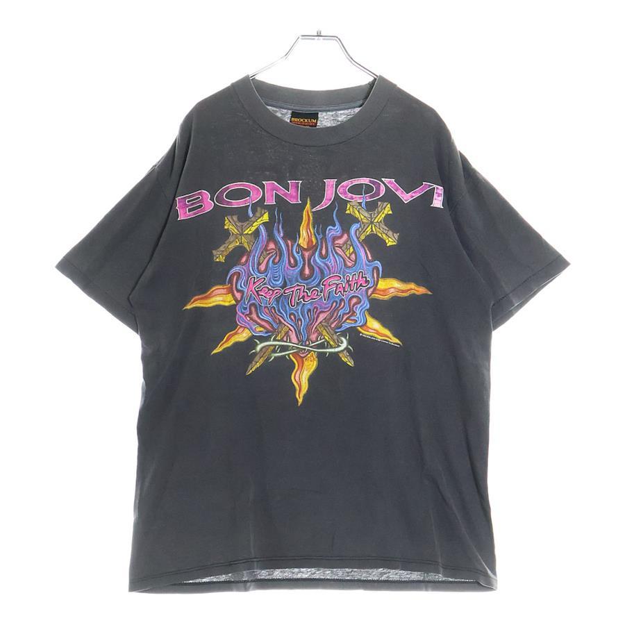 [モデル]90's BON JOVI KEEP THE FAITH WORLD TOUR ボンジョビ キープ ザ フェイス ツアーT Tシャツ 半袖カットソー 両面プリント ブラック