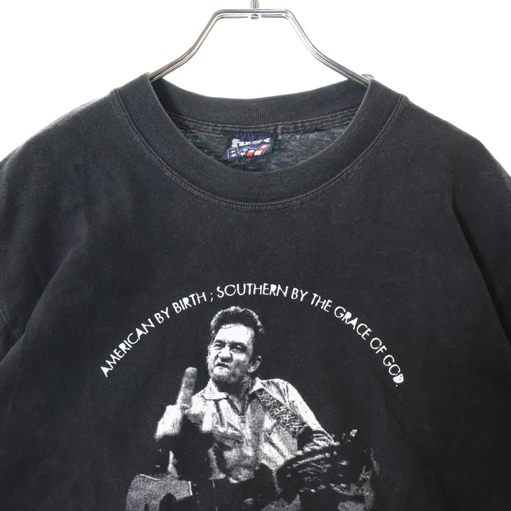 [モデル]90S VINTAGE FUCT JOHNNY CASH ファクト ジョニーキャッシュ フロントプリント クルーネック半袖Tシャツ カットソー ブラック