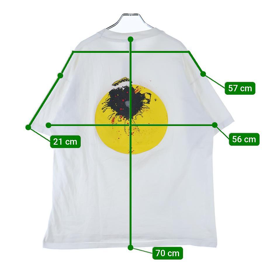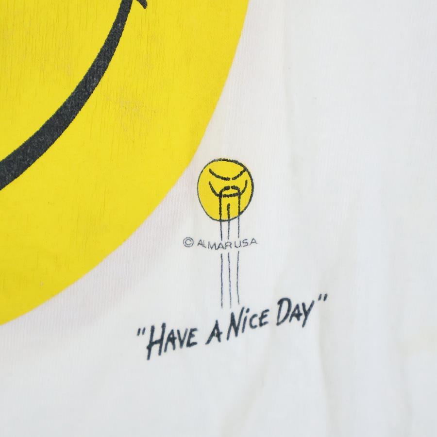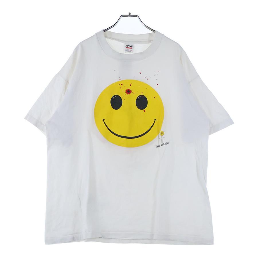 [モデル]90S VINTAGE SMILEY FACE ヴィンテージ ぶち抜き スマイリーフェイス 両面プリント クルーネック半袖Tシャツ カットソー ホワイト