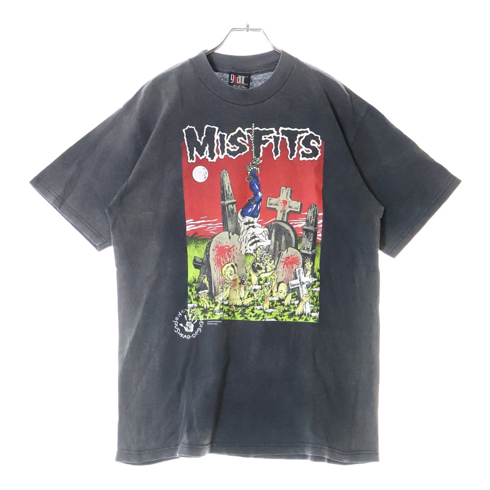 [モデル]90S VINTAGE MISFITS PUSHED 1995 ヴィンテージ ミスフィッツ ヘッドプリント フロントプリント クルーネック半袖Tシャツ カットソー チャコールグレー