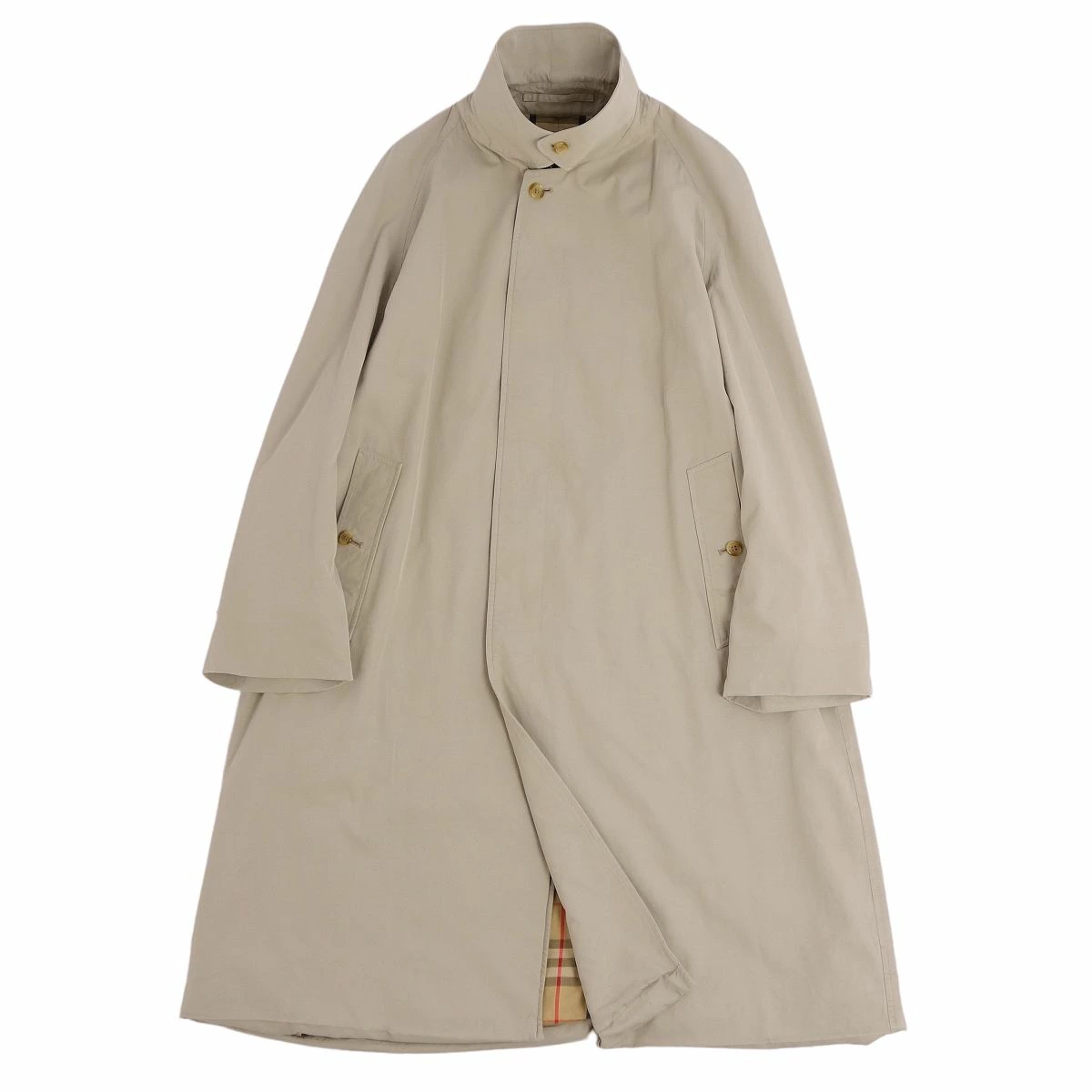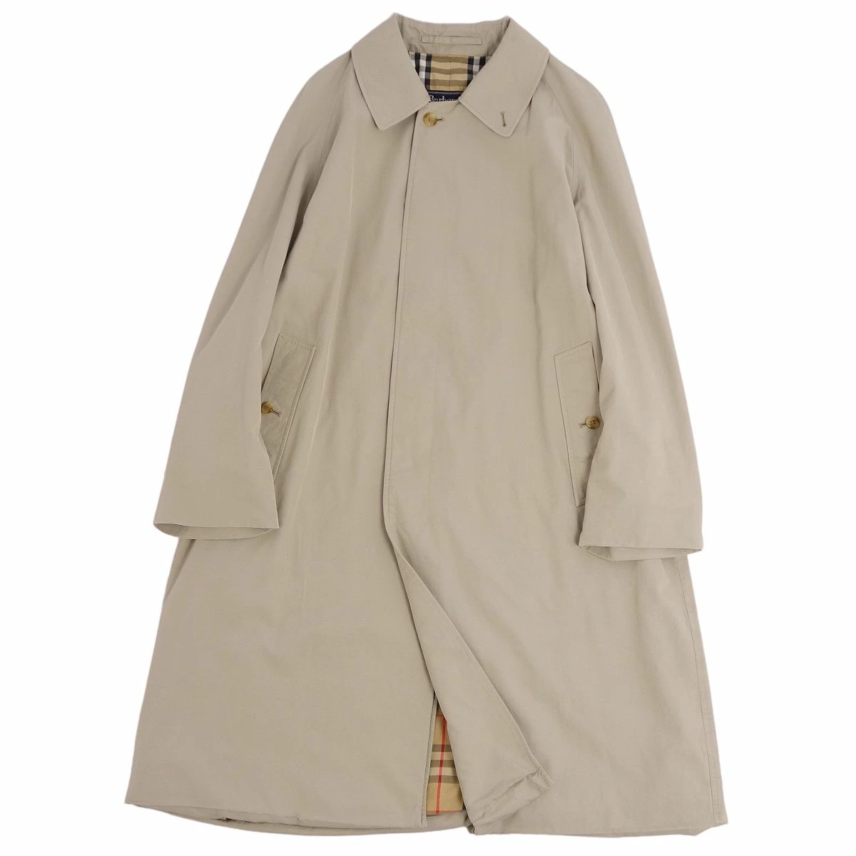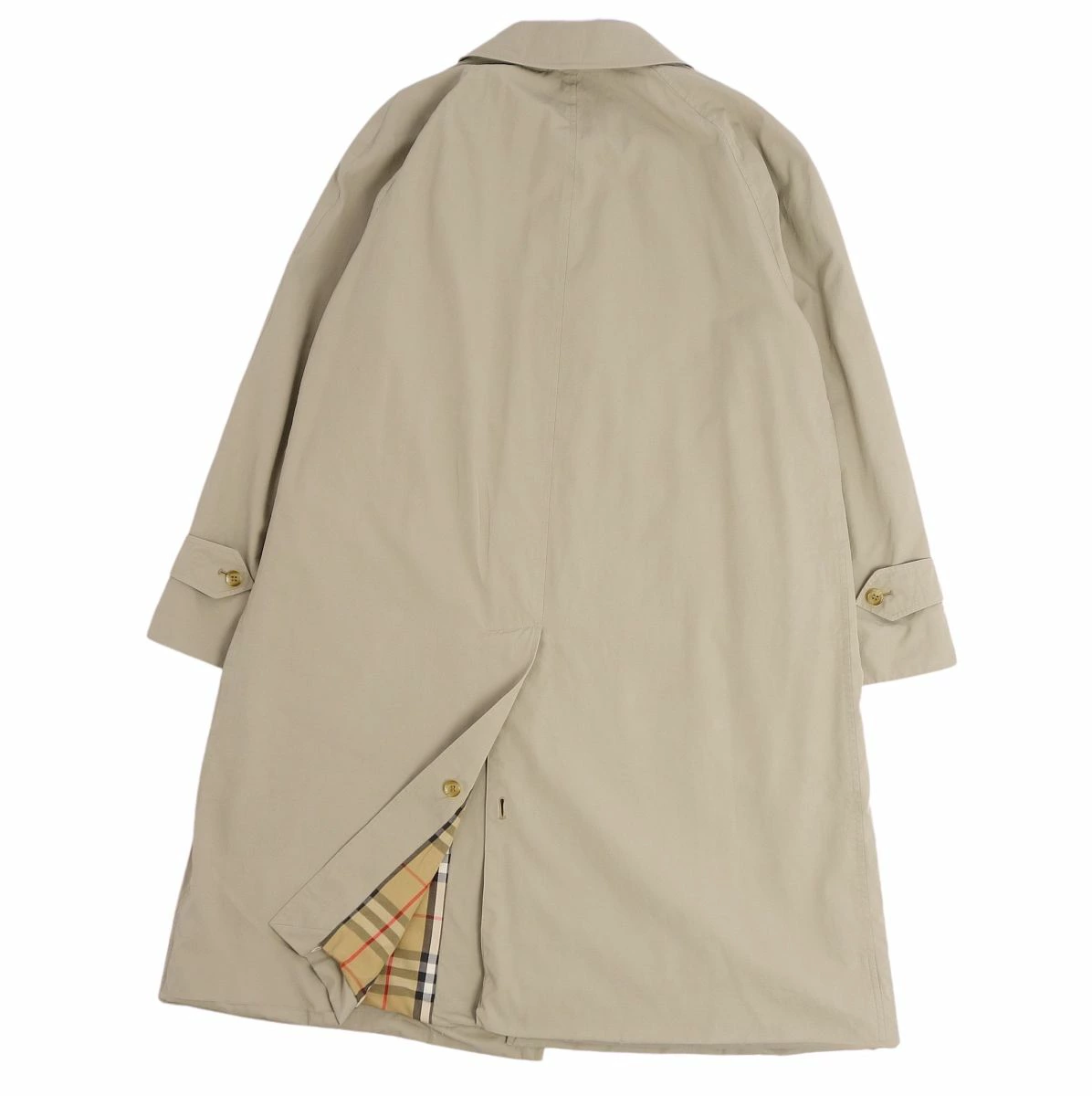 ■商品名Vintage バーバリー Burberrys コート ステンカラーコート バルマカーンコート 裏チェック 英国製 アウター メンズ ベージュ サイズ50SHORT(M相当)■状態説明・希少かつ絶大な人気を誇る1990年代頃のVintage Burberrys、クラシカルで美しいシルエットが魅力的な王道トレンチコートです♪・表地はコットン100%バーバリークロス、裏地はアイコニックなチェックデザイン、スッキリとしたショルダーラインの一着です◎・イングランド製・国内正規品取り扱い品です。・裾に擦り切れが御座いますが、ご使用に差し支えるものはなく全体的に良好な状態です!【季節感:秋冬春】【付属品:なし】■素材表地:コットン100% 胴裏:コットン100% 袖裏:ポリエステル■カラーベージュ■表記サイズ50SHORT(M相当)■実寸サイズ着丈:約103cm身幅:約55cmゆき丈:約84cm袖丈(脇下から):約43cm■状態ランクB 使用感はあるが傷や汚れの少ない良好な状態■店舗管理番号cg05mr-rm10f03603mens_beige mens_m