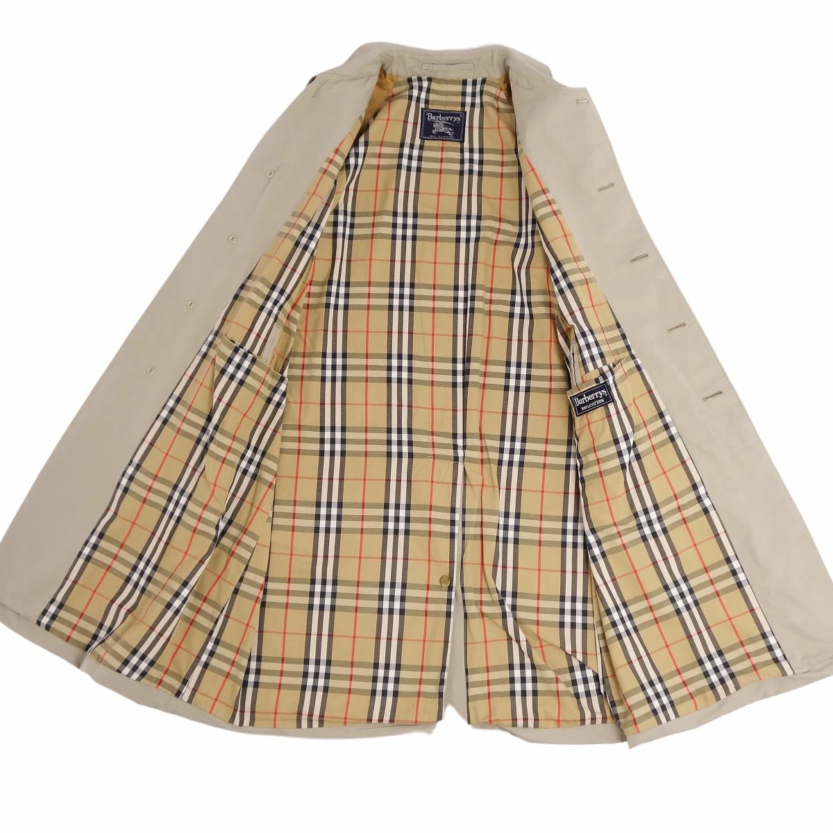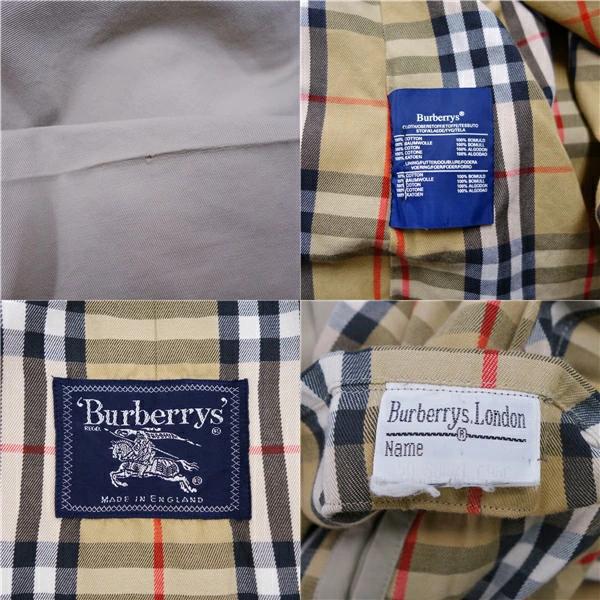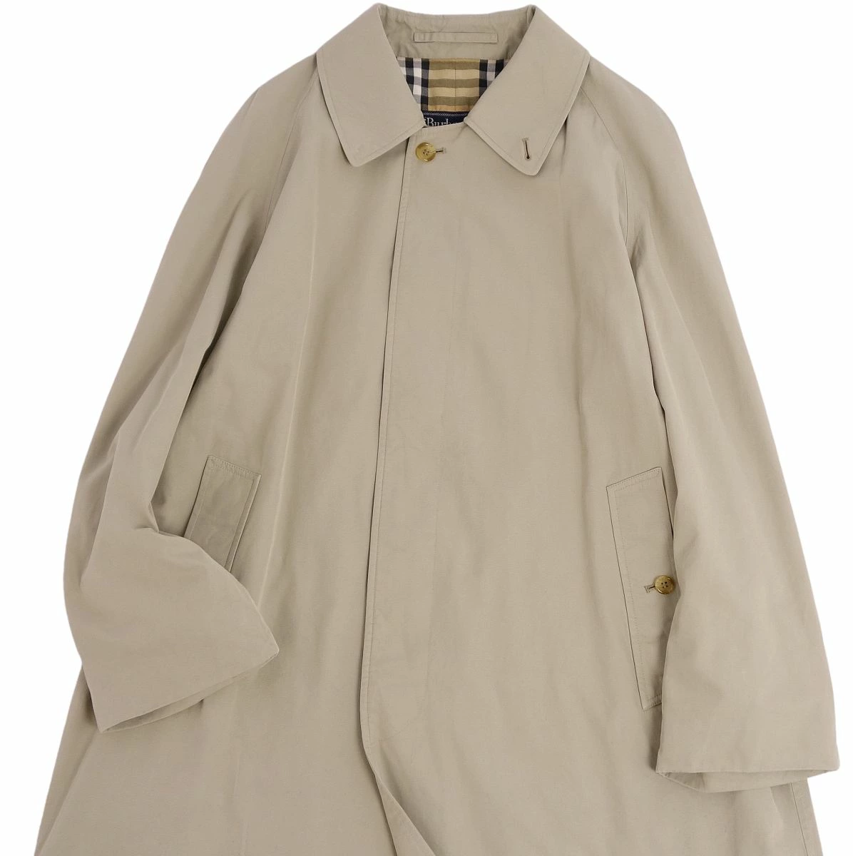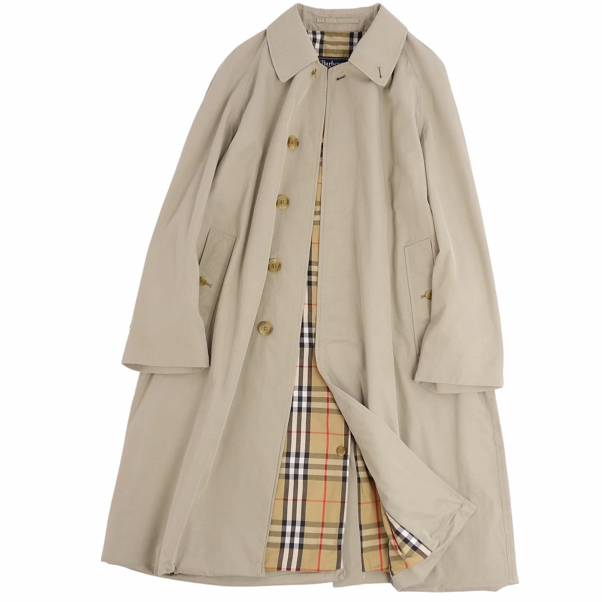 ■商品名Vintage バーバリー Burberrys コート ステンカラーコート バルマカーンコート 裏チェック 英国製 アウター メンズ ベージュ サイズ50SHORT(M相当)■状態説明・希少かつ絶大な人気を誇る1990年代頃のVintage Burberrys、クラシカルで美しいシルエットが魅力的な王道トレンチコートです♪・表地はコットン100%バーバリークロス、裏地はアイコニックなチェックデザイン、スッキリとしたショルダーラインの一着です◎・イングランド製・国内正規品取り扱い品です。・裾に擦り切れが御座いますが、ご使用に差し支えるものはなく全体的に良好な状態です!【季節感:秋冬春】【付属品:なし】■素材表地:コットン100% 胴裏:コットン100% 袖裏:ポリエステル■カラーベージュ■表記サイズ50SHORT(M相当)■実寸サイズ着丈:約103cm身幅:約55cmゆき丈:約84cm袖丈(脇下から):約43cm■状態ランクB 使用感はあるが傷や汚れの少ない良好な状態■店舗管理番号cg05mr-rm10f03603mens_beige mens_m