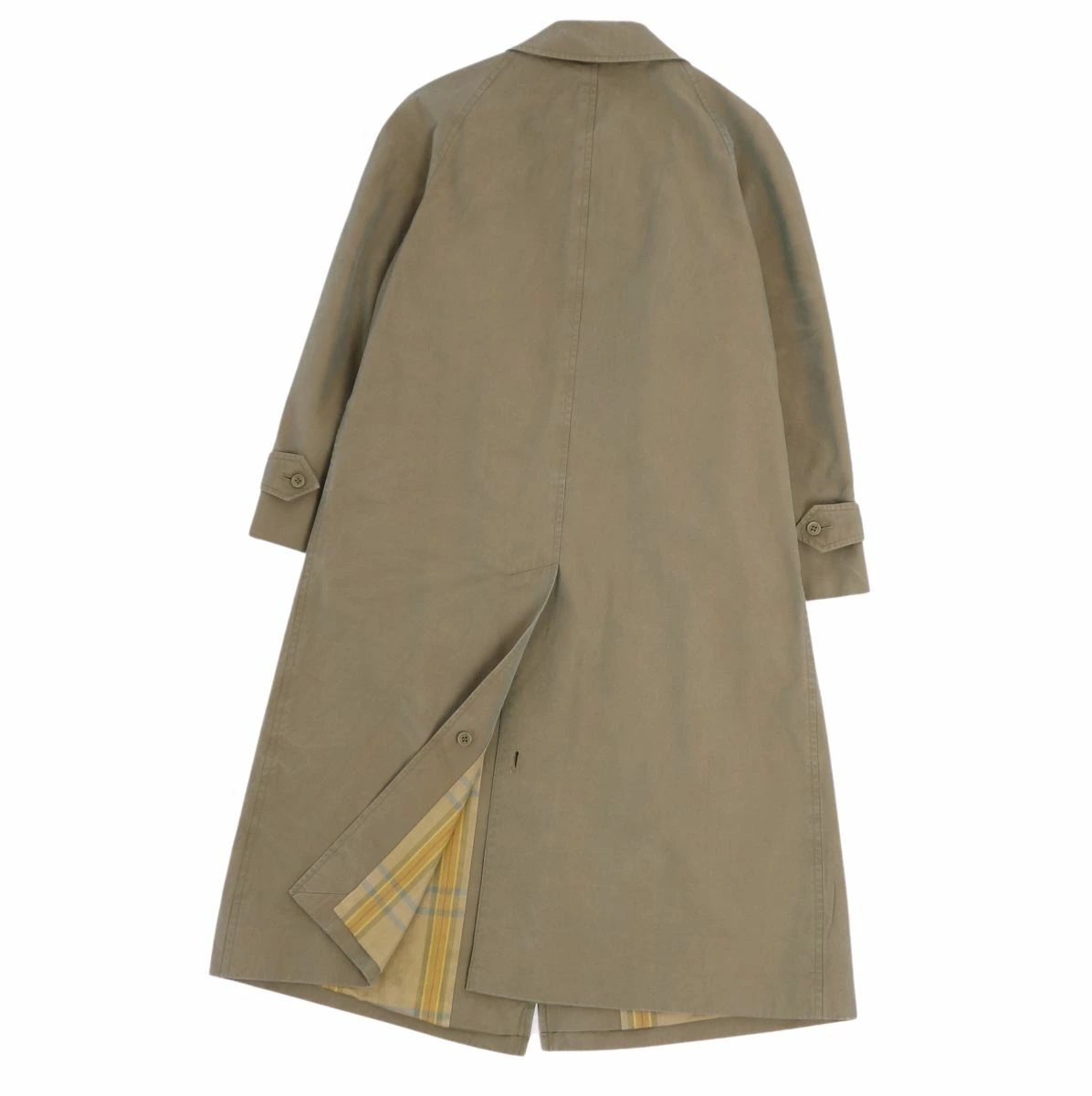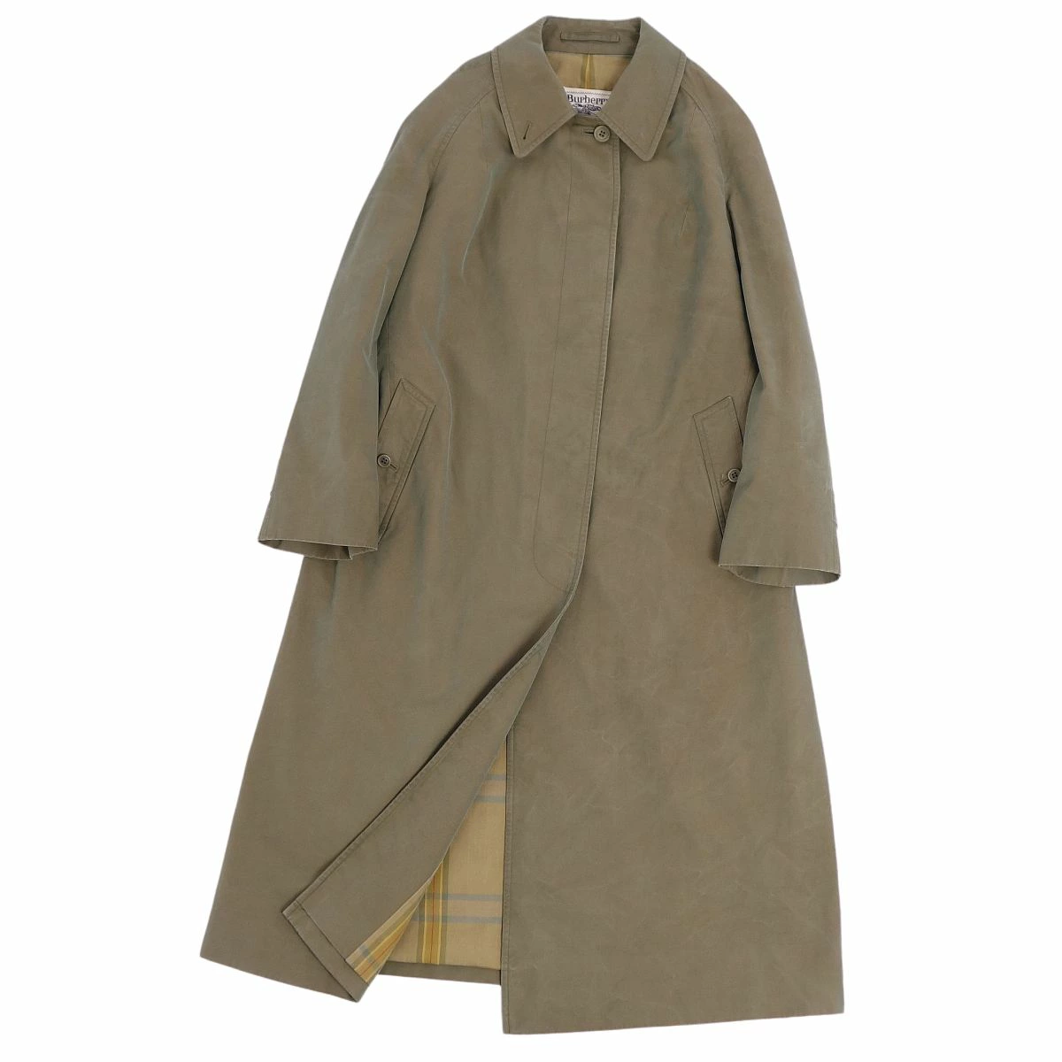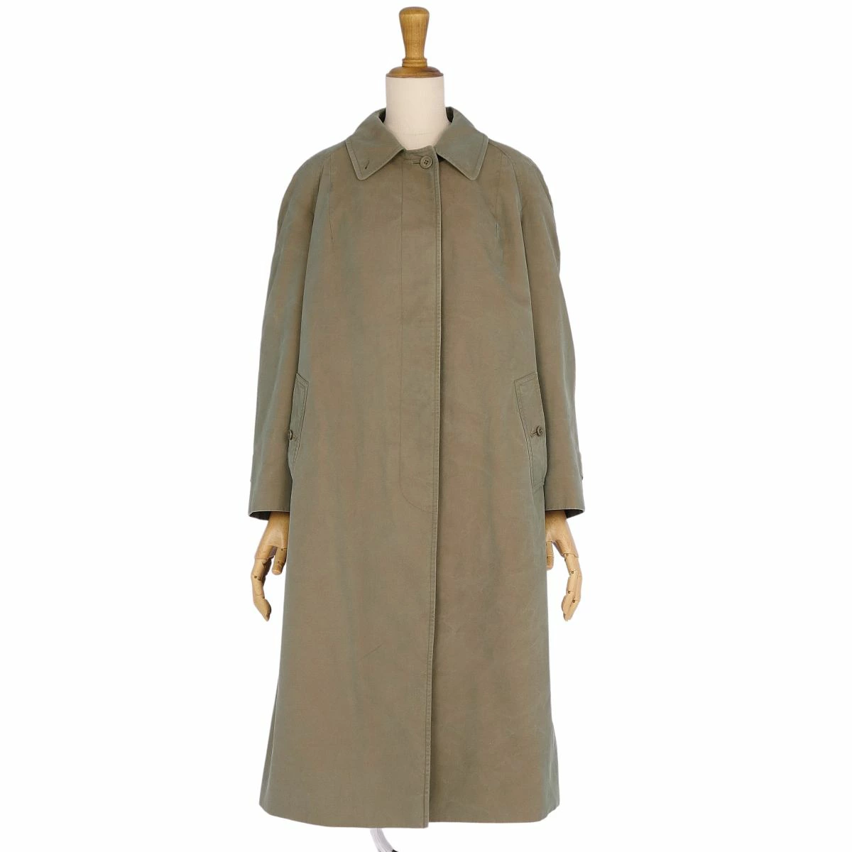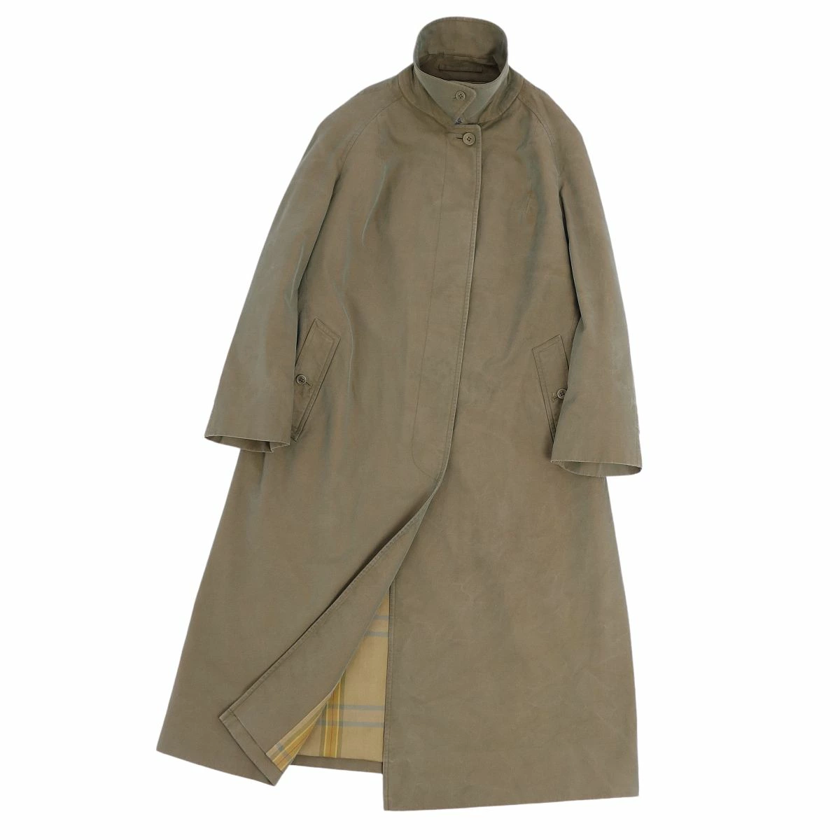 ■商品名Vintage バーバリー Burberrys コート ステンカラーコート バルマカーンコート 裏チェック アウター レディース カーキ サイズL■状態説明・希少かつ絶大な人気を誇る1990年代頃のVintage Burberrys、クラシカルで美しいシルエットが魅力的なステンカラーコート(バルマカーンコート)です♪・表地はコットン100%バーバリークロス、裏地はアイコニックなチェックデザイン、肩パットなしで美しいショルダーラインです◎・国内正規品取り扱い品です。・襟首と袖口に擦り切れが御座いますが、ご使用に差し支えるものはなくまだまだお使い頂ける状態です!【季節感:秋冬春】【付属品:なし】■素材表地:コットン100% 胴裏:コットン 袖裏:ポリエステル■カラーカーキ■表記サイズL■実寸サイズ着丈:約101cm身幅:約48cmゆき丈:約73cm袖丈(脇下から):約36cm■状態ランクB 使用感はあるが傷や汚れの少ない良好な状態■店舗管理番号cg06mn-rm05f04310womens_khaki womens_l