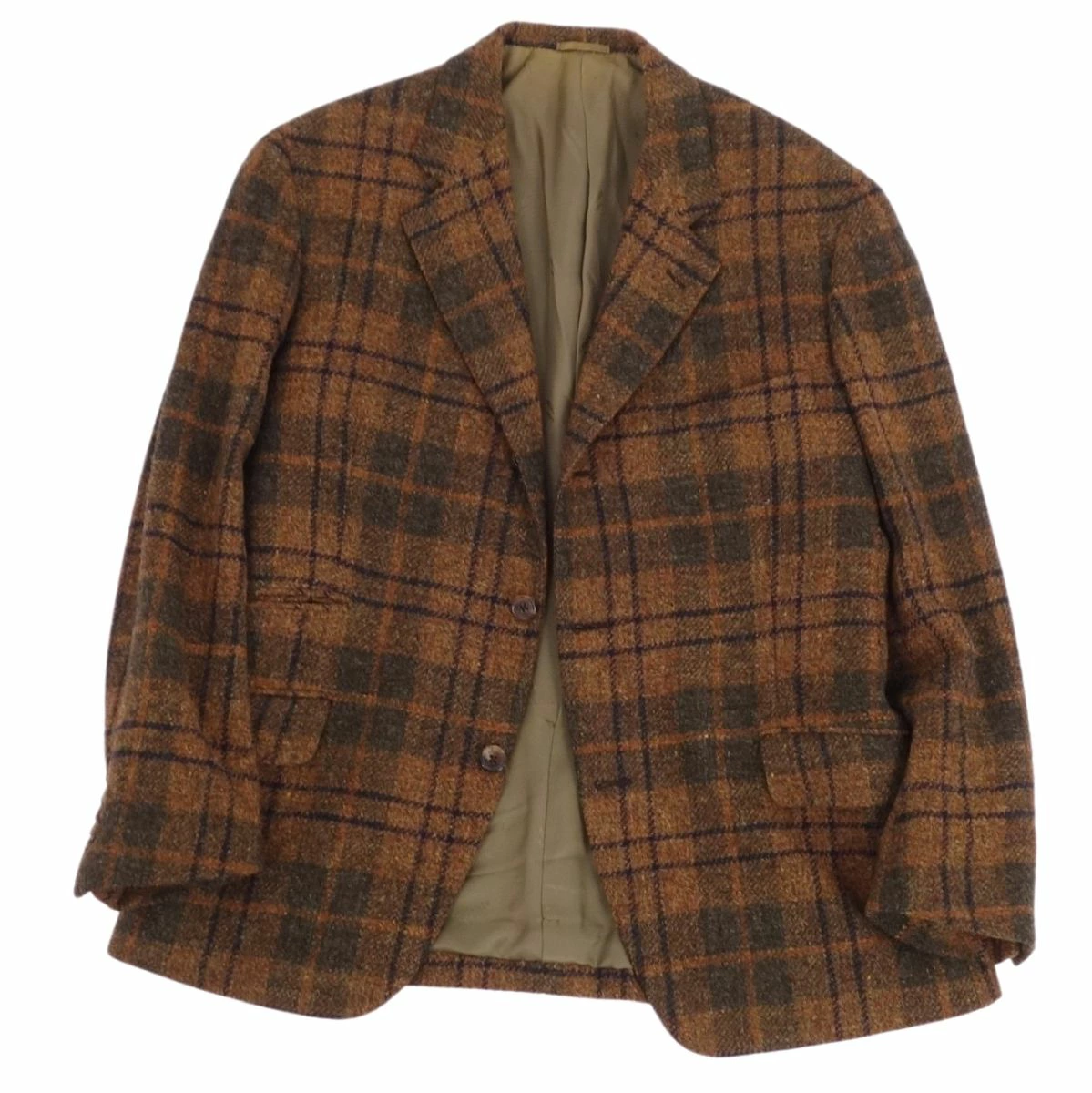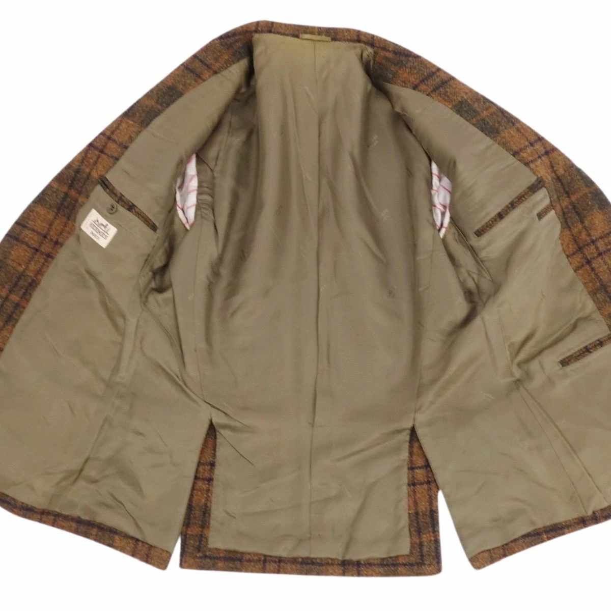 ■商品名Vintage エルメス HERMES ジャケット テーラード チェック ウール ツイード アウター メンズ イタリア製 ブラウン サイズ50(M相当)■状態説明・希少なVintage HERMES。上質なウール素材を使用した、テーラードジャケットです♪・深みのあるカラーリングにチェックデザインが目を引く一品です◎・イタリア製・国内正規取り扱いの製品です。・裏地の襟首や脇、袖に汚れが御座いますが、外装は気になるようなキズや汚れなどはなくキレイな状態です!【季節感:秋冬】【付属品:なし】■素材表地:ウール100% 裏地:レーヨン■カラーブラウン■表記サイズ50(M相当)■実寸サイズ着丈:約72cm身幅:約55cm肩幅:約46cm袖丈:約59cm■状態ランクB 傷や汚れがあるが、まだまだ使用可能な状態■店舗管理番号ce01mn-rm08e28594mens_brown mens_m