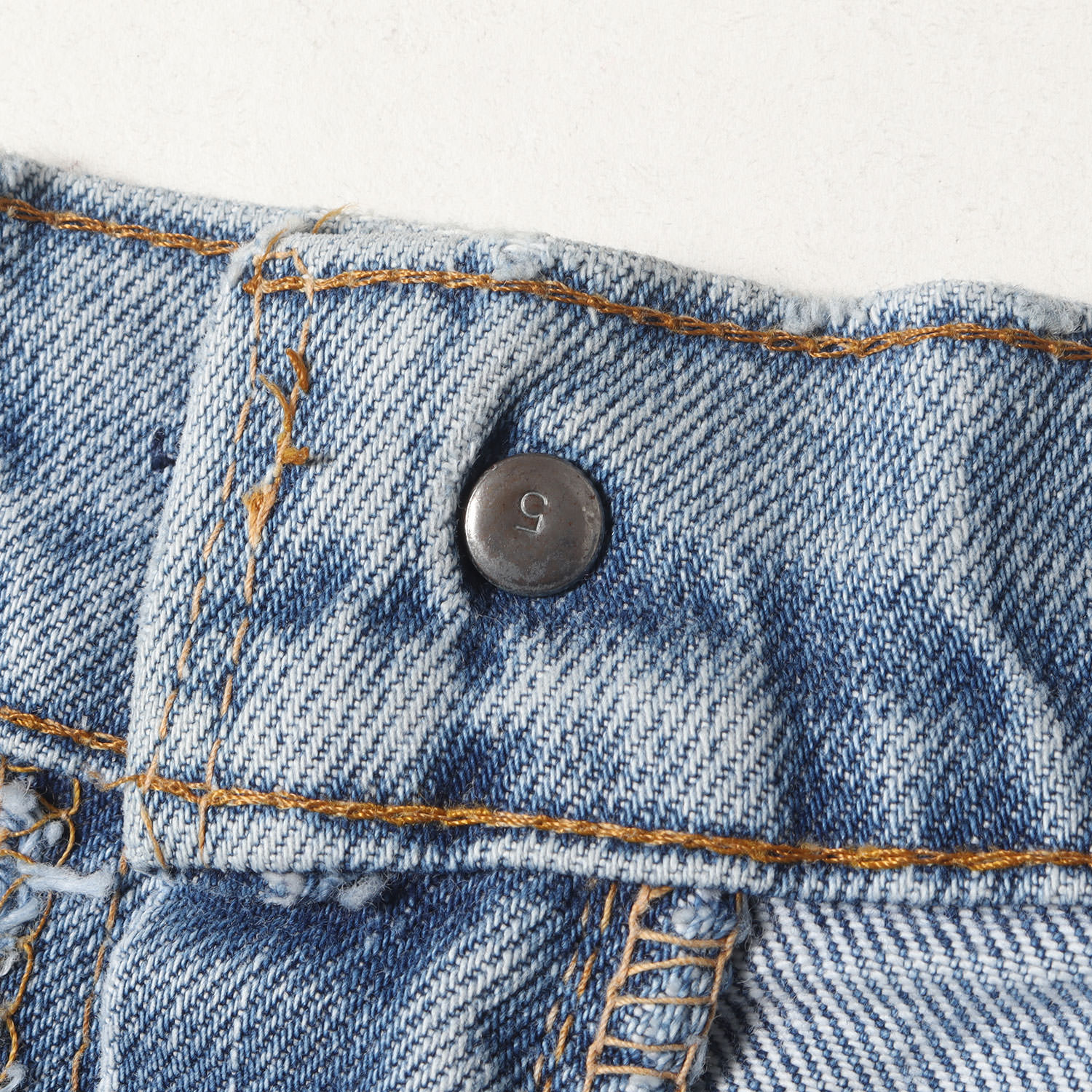 | 状態 | ヴィンテージ ・左膝、裾、コインポケットに破れあり ・所々に汚れ、擦れあり ・紙パッチ欠損 |