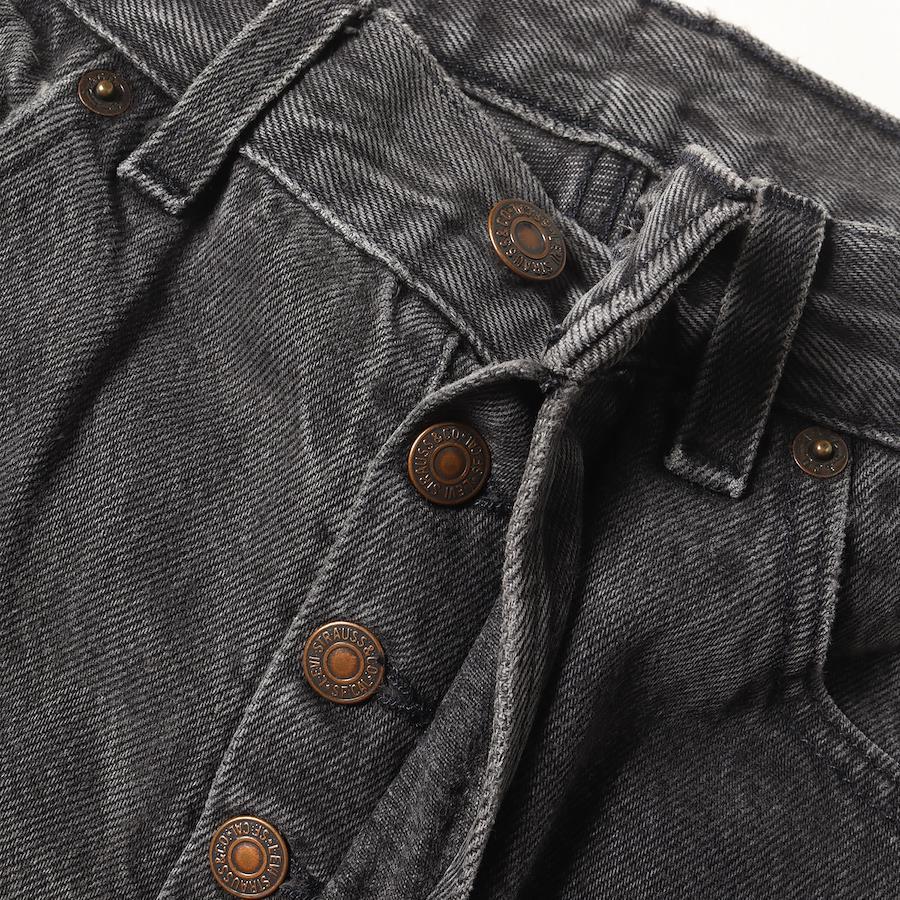 | 商品説明 | ・グッドコンディション ・後染めブラックデニム生地 ・サークルRタブ ・紙パッチ ・ボタンフライ ・ボタン裏刻印“653” ・脇割り ・裾シングルステッチ ・USA製 |