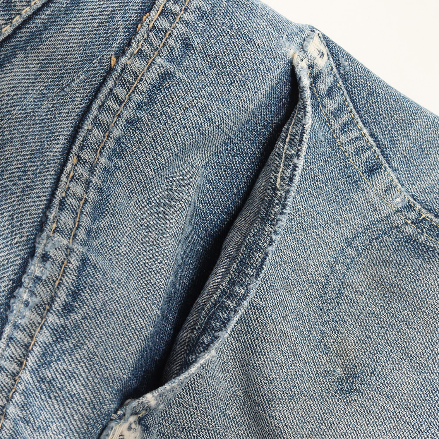 | 状態 | ヴィンテージ ・右腿にリペアが見られますが、その他に破れなどの大きなダメージは無く、年代のわりには状態良好になります。 ・所々に汚れ、擦れ、ステッチ抜けあり |