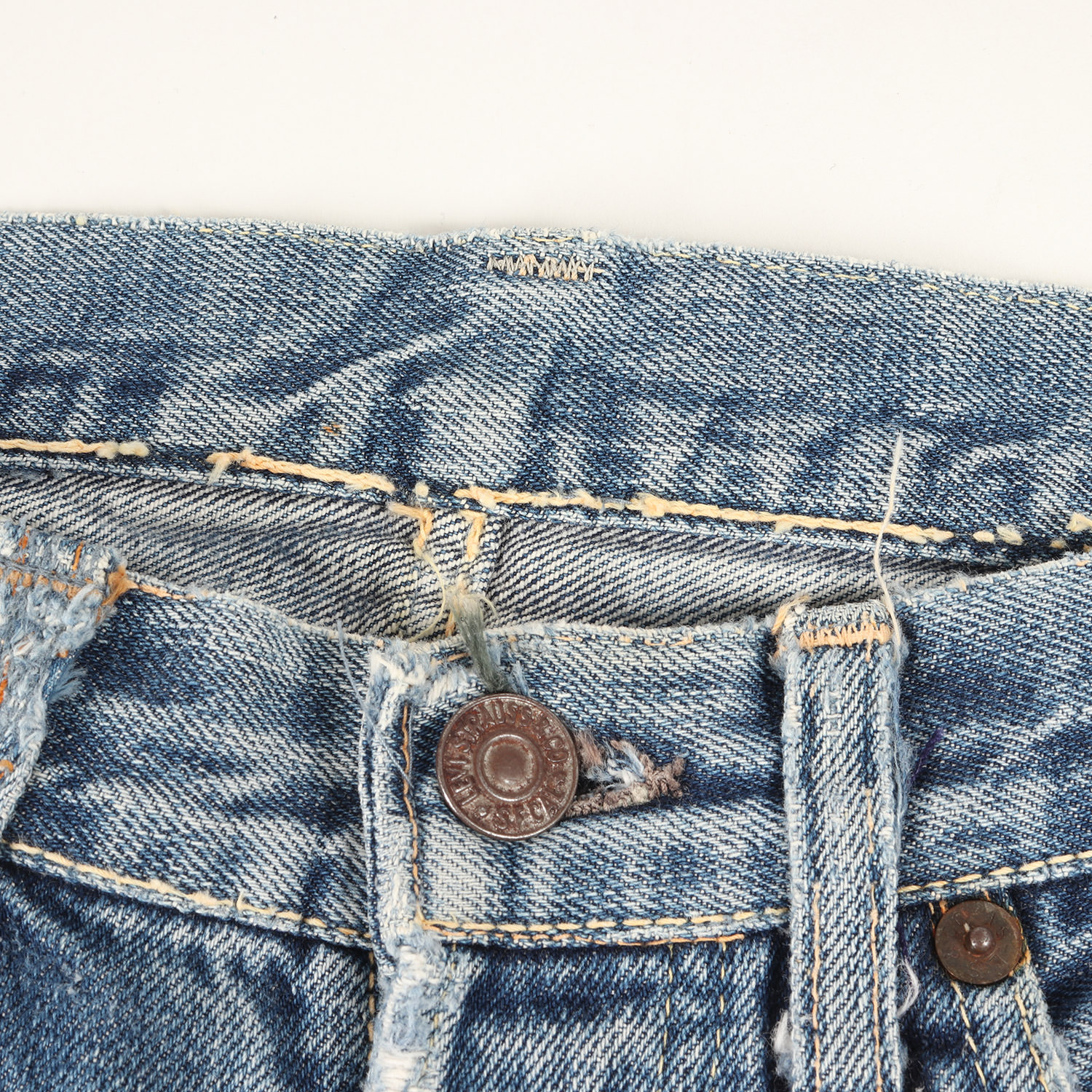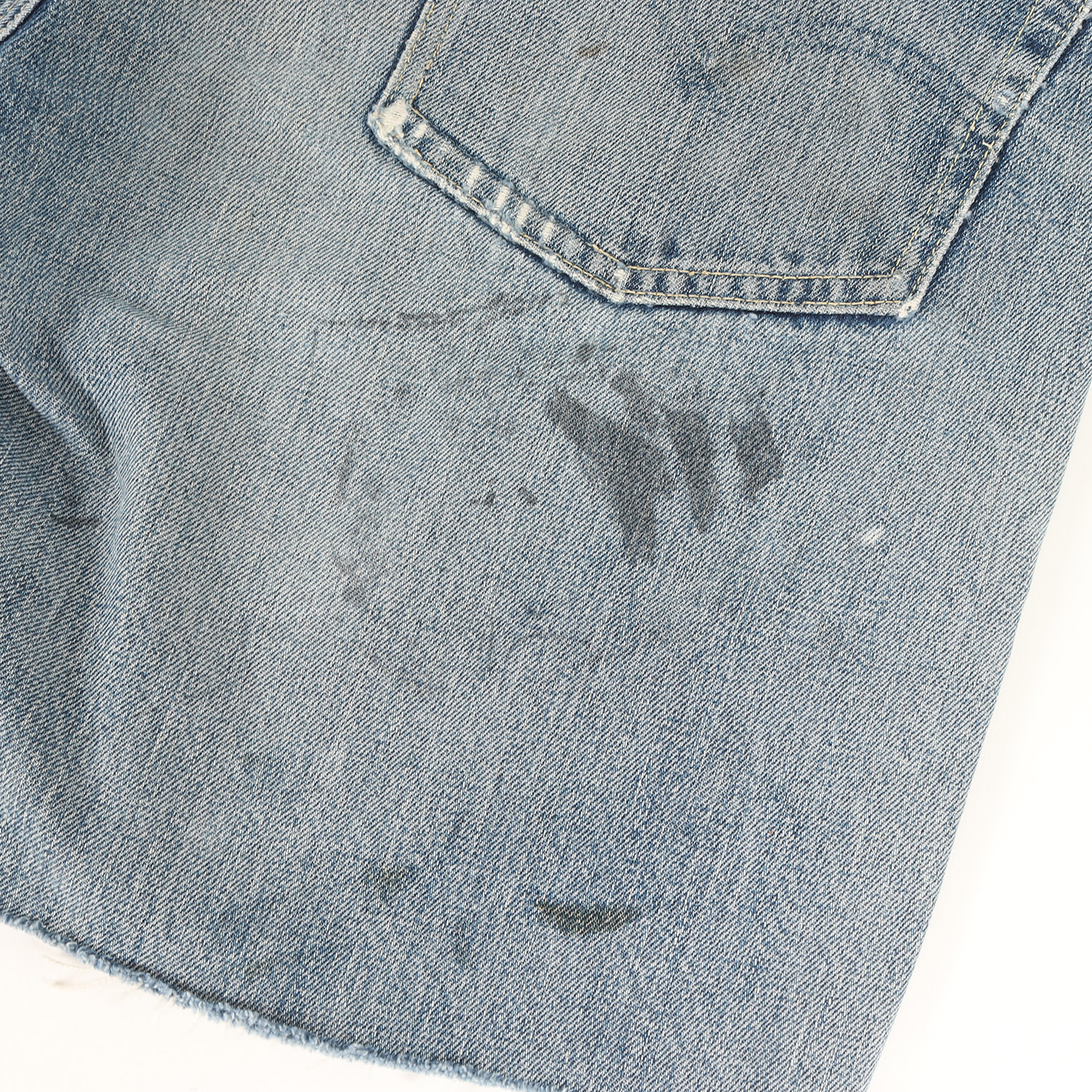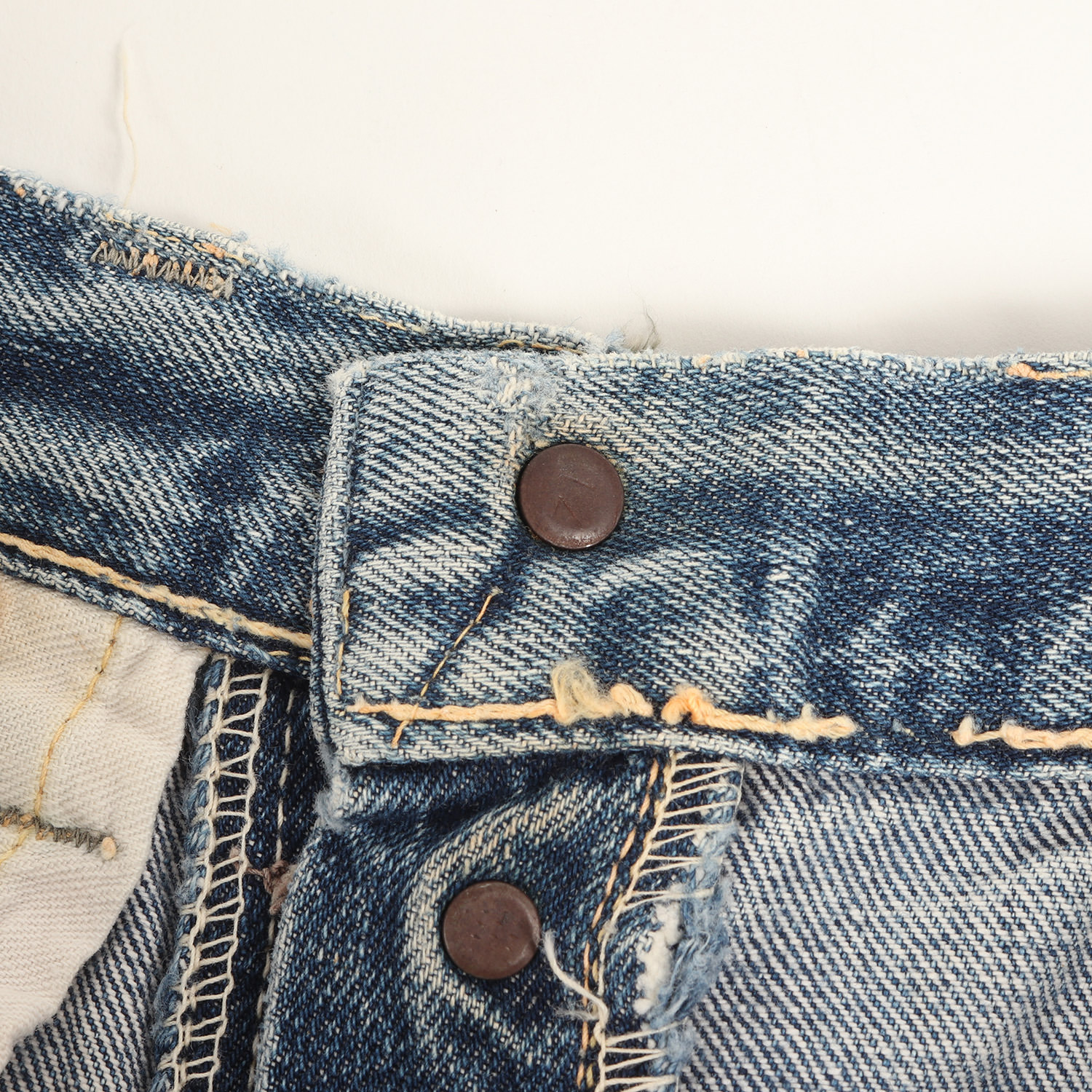 | 商品説明 | ・カットオフカスタム ・“501XX 紙パッチギャラ入り”モデル ・紙パッチ(欠損) ・両面BigE赤タブ(読み取り不可) ・隠しリベットあり(14刻印) ・リベット裏銅色 ・胴メッキ鉄製リベット ・ボタン裏刻印“12” ・バックベルトループ オフセット(センターループずれ) ・イエロー&オレンジステッチ ・フロントVステッチ ・ボタンフライ足長R ・ウエスト上シングルステッチ ・コインポケット裏 耳付き |