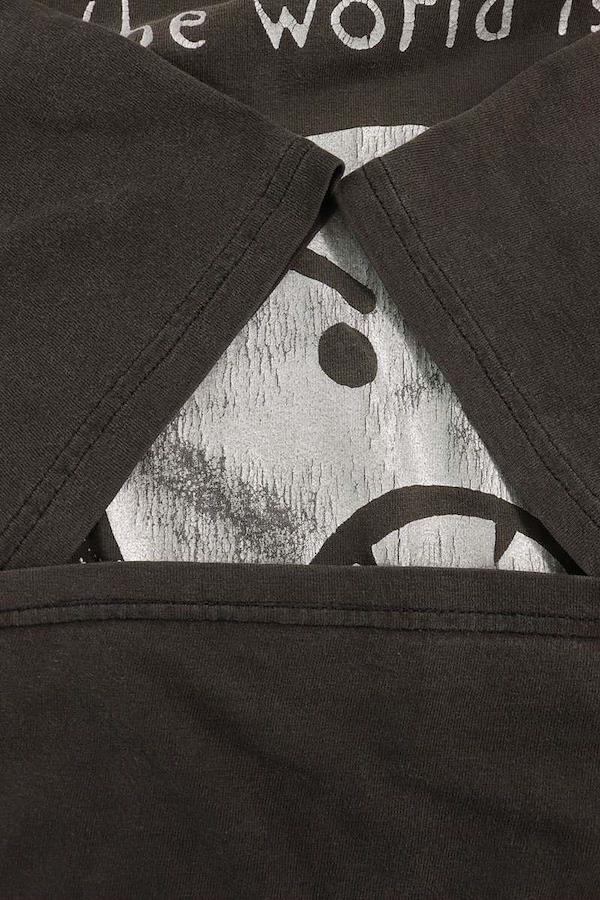 ランク:C (ダメージ、汚れが目立つ商品)状態備考:ヴィンテージ商品の為経年劣化によるダメージのある商品です裾にリペア跡がありますプリント部分にひび割れ、剥がれがあります裾ステッチ部分にほつれがあります(最大約6cm)全体的に色褪せ、毛羽立ちがありますブランド:ヴィンテージサイズ:XL色:ブラック調実寸:肩幅57cm 身幅57cm 着丈83.5cm 袖丈22.5cm重さ:-素材:コットン付属品:なしその他特徴:-管理番号:10519-250911-0042