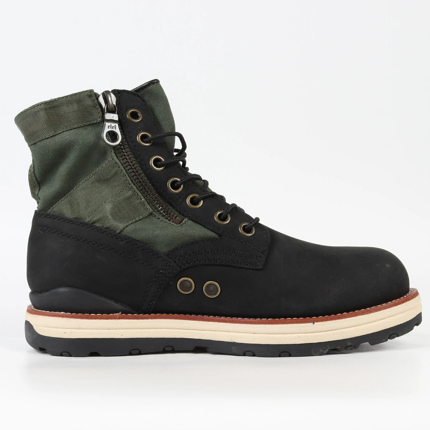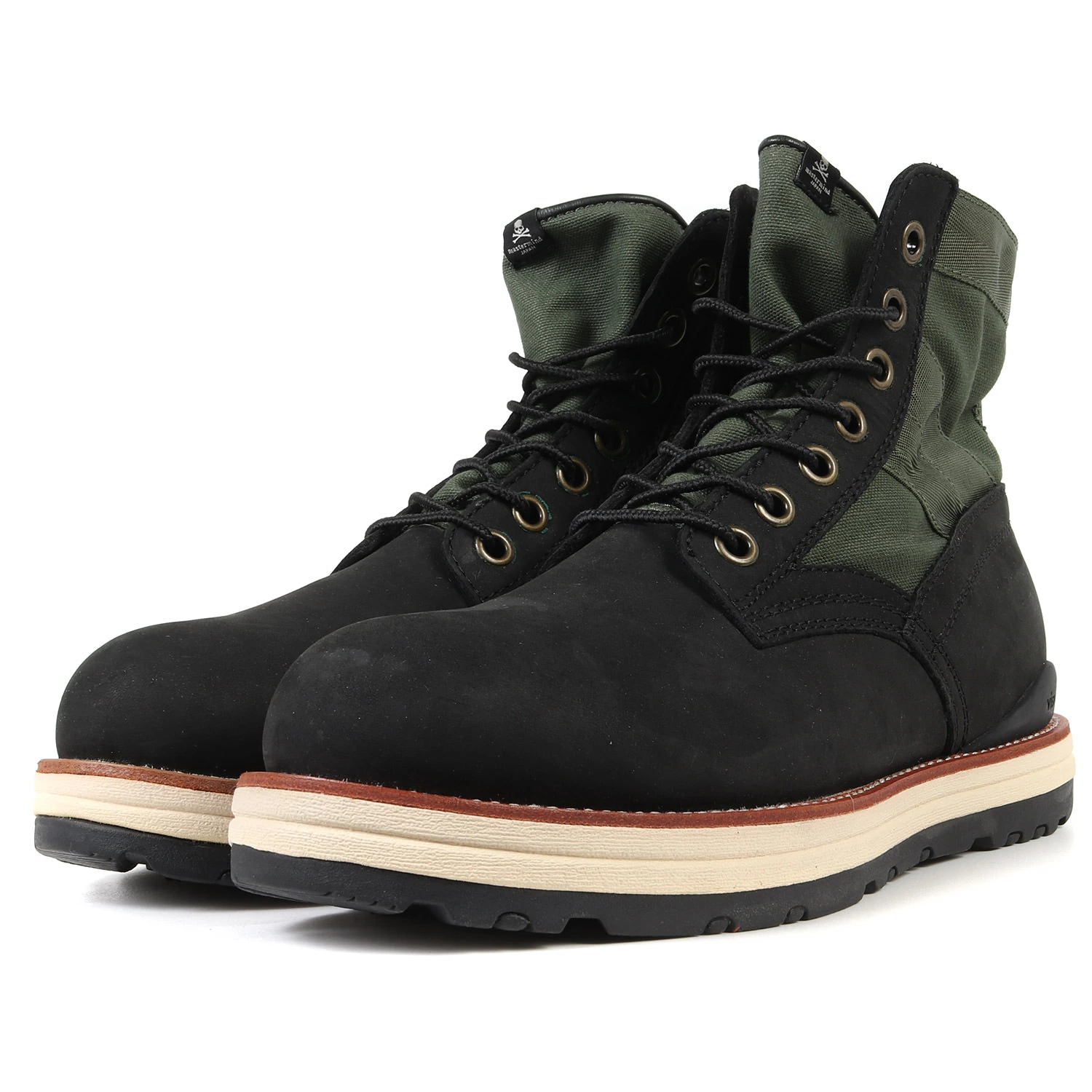 | 商品説明 | こちらはmastermind(マスターマインド)とのコラボシリーズになります。上質なレザー素材とパラフィン樹脂防水加工のキャンバス生地のコンビで仕上げた7ホールブーツです。ソールにはVibram社を採用し、グッドイヤーウェルト製法で仕上げた高級感のある一足になります。タン部分・内側サイドに付属したネームタグがポイントです。 |