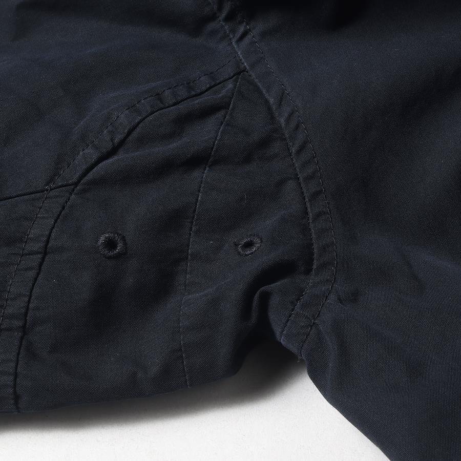 | 商品説明 | 滑らかなタッチと柔らかなこしを併せ持つ独特な風合いの高密度コットン/ナイロン混紡生地を使用したモッズコートです。DAMAGED加工+天然染料加工(泥染め)を施した一枚になります。 |