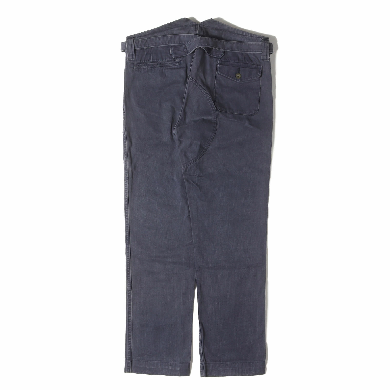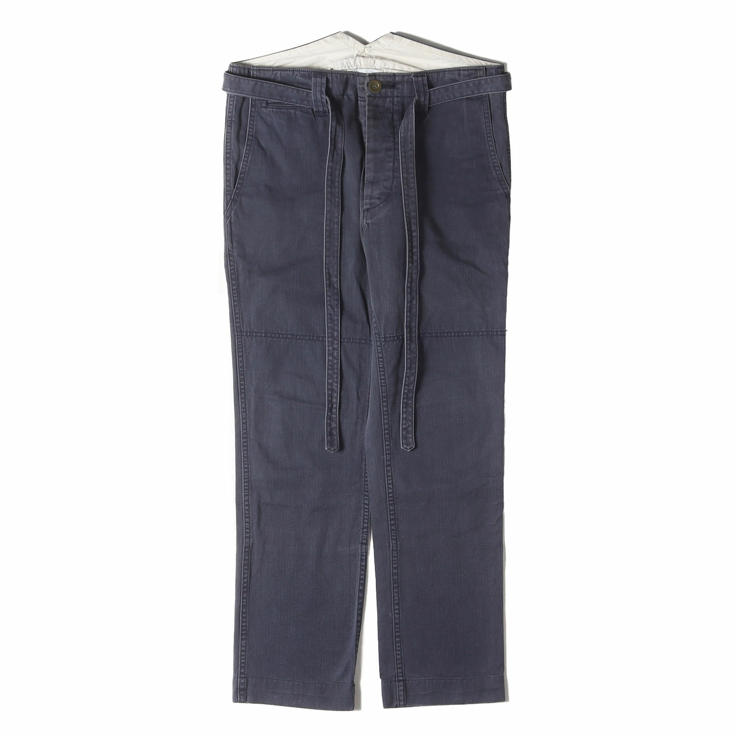 | 商品説明 | コットンスラブツイル生地を使用し、ウォッシュ加工を施したボタンフライパンツです。同素材のベルトがデザインされております。 |