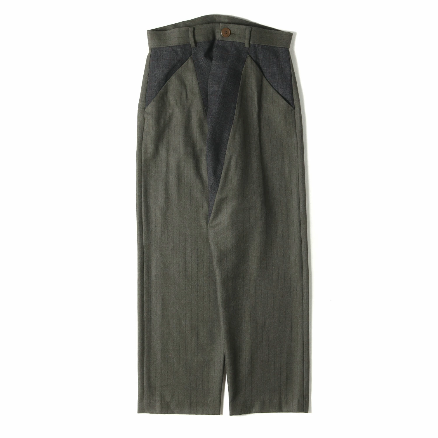 | サイズ | 46 ウエスト約80cm(平置き)×股上約57cm×股下約48(切替し接合部分から裾先まで)cm×ワタリ幅約42cm(もも幅)×裾幅約22cm |