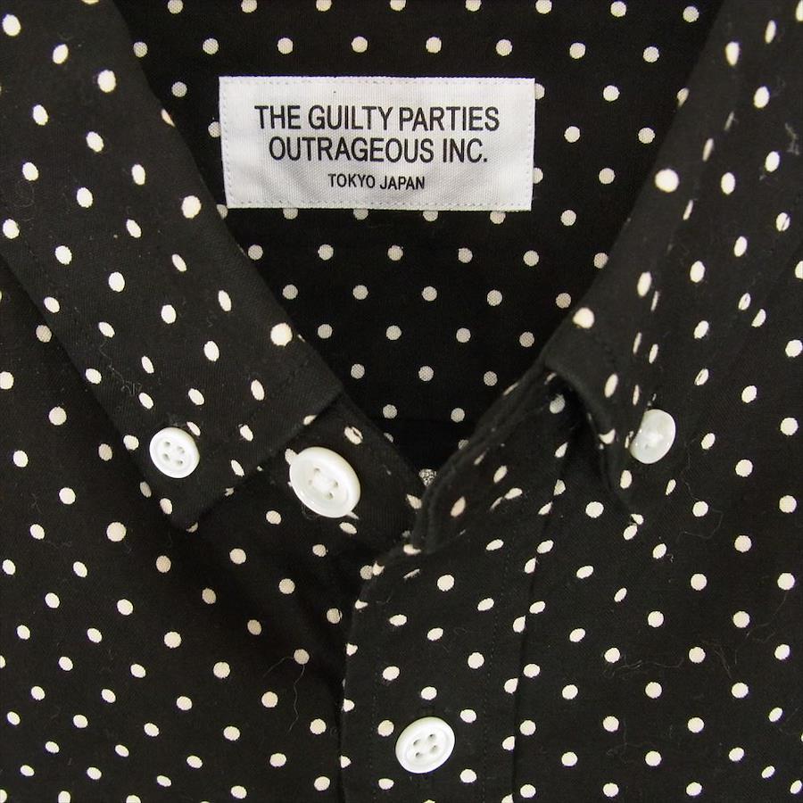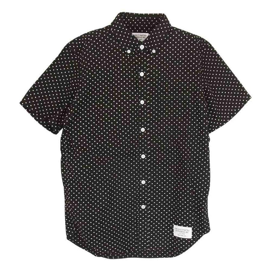 ブラック系【モデル】刺繍 ドット ボタンダウン 半袖 シャツ