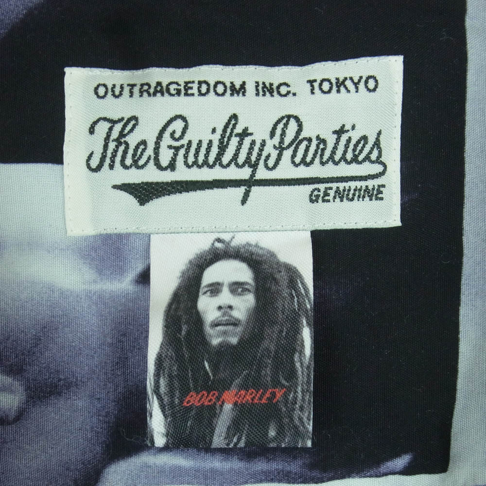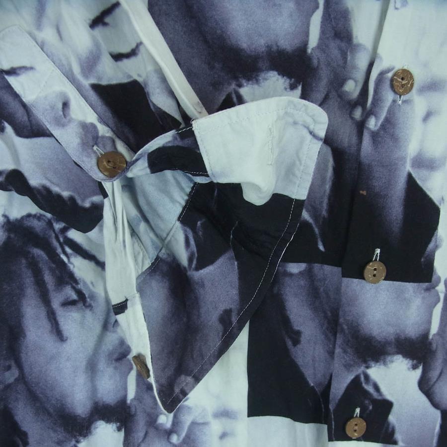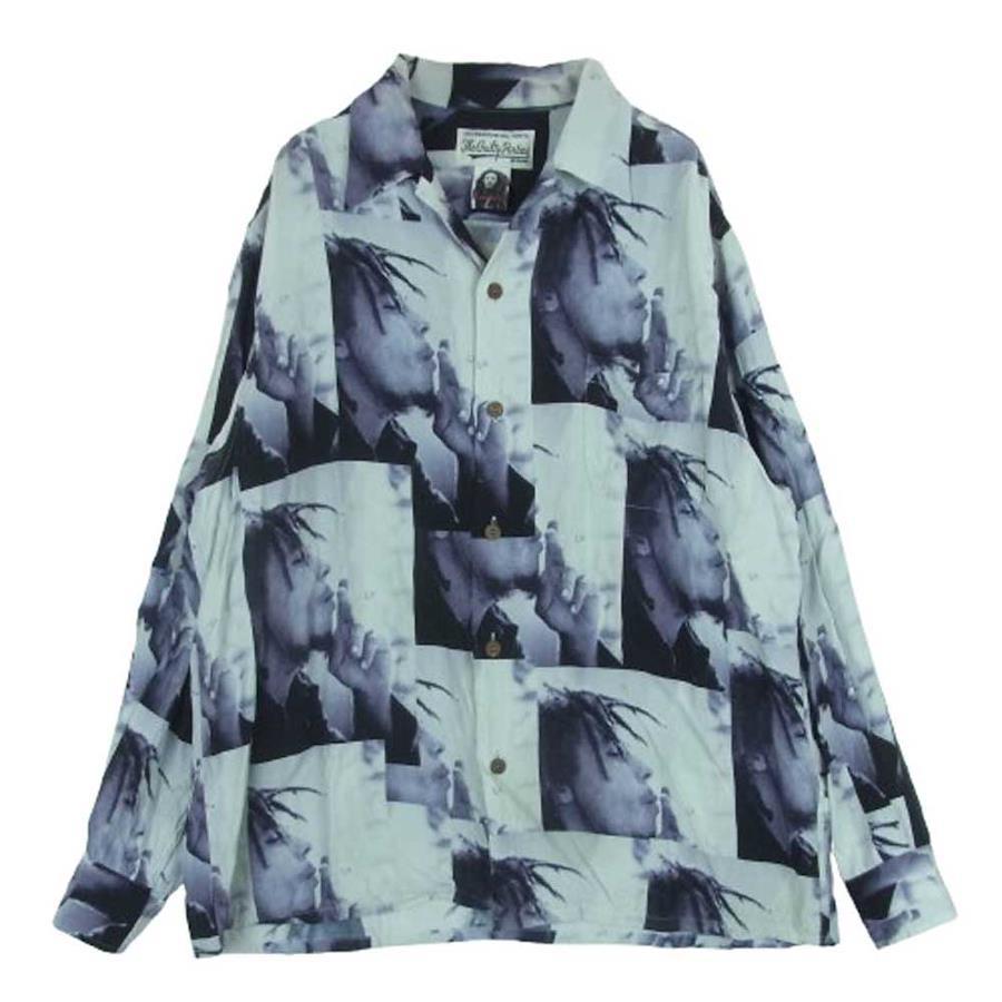 オフホワイト系 x ブラック系【モデル】BOB MARLEY HAWAIIAN SHIRT ボブマーリー ハワイアン オープンカラー 長袖 シャツ