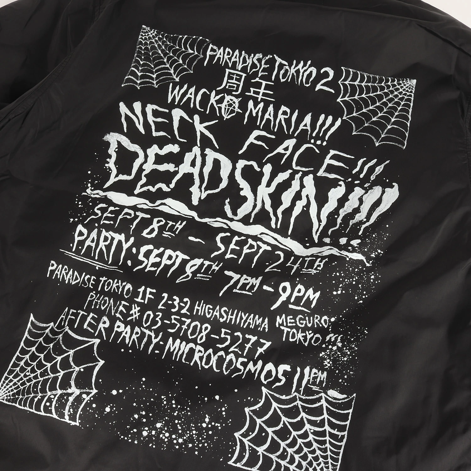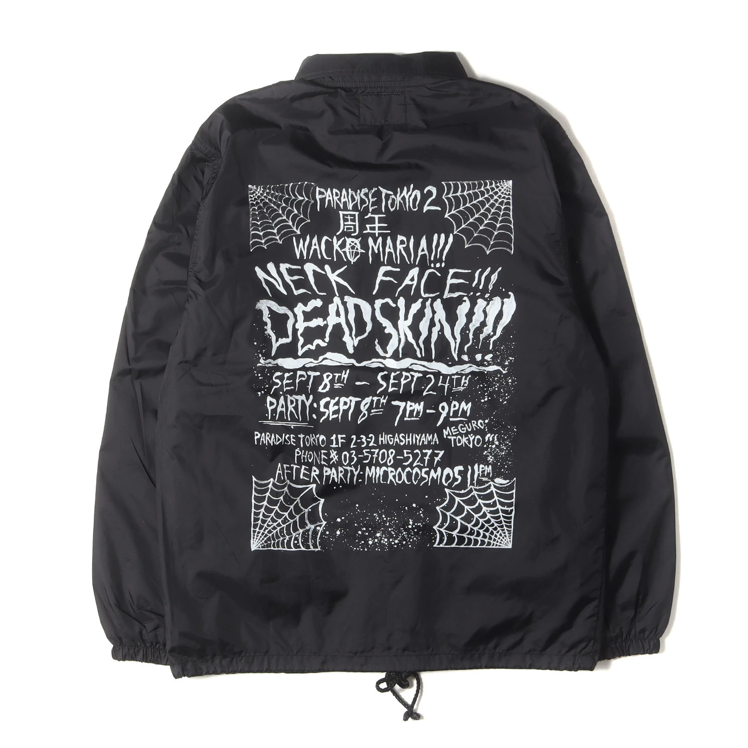 | 商品説明 | こちらはパラダイス東京2周年記念のナイロンコーチジャケットです。L.A.出身のグラフィティアーティスト「NECK FACE(ネックフェイス)」によるグラフィックプリントが印象的なデザインです。 |