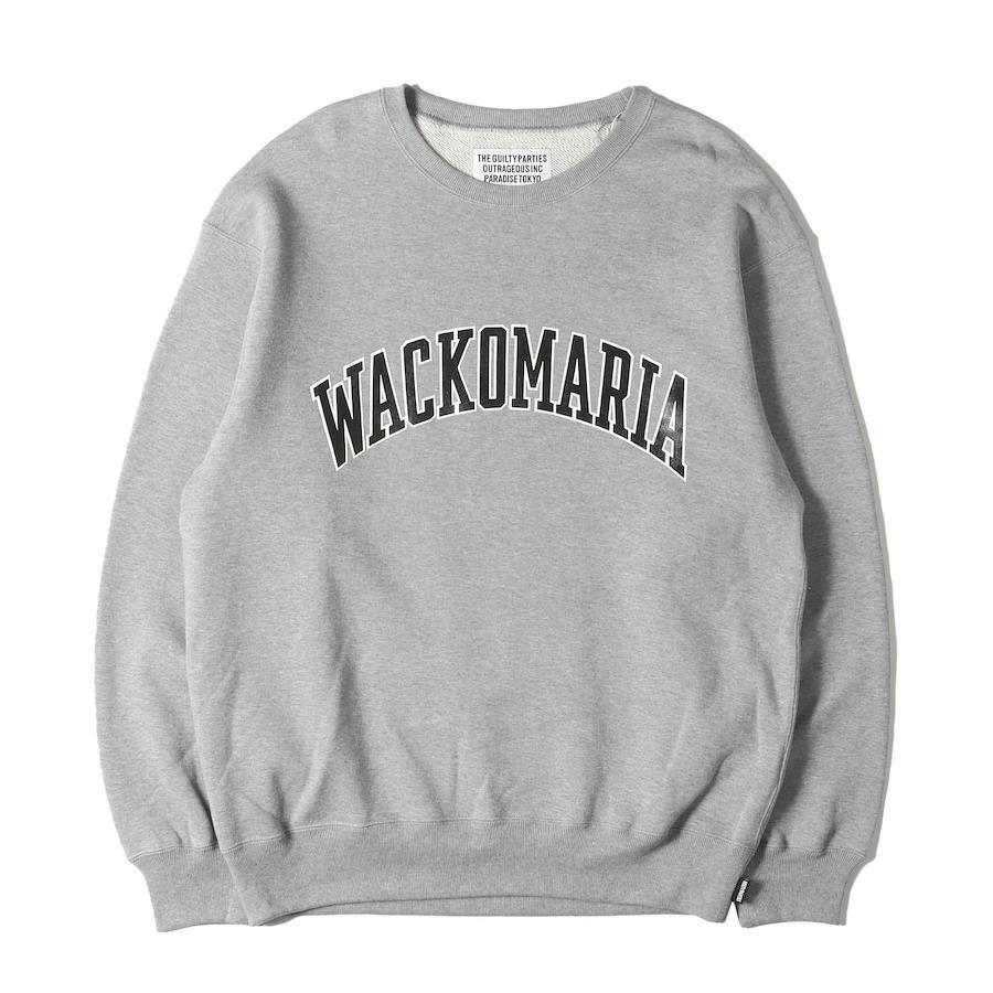 WACKO MARIA Men's Arch Logo Crew Neck Sweatshirt, Size L, 2024 Spring/Summer Collection, Gray, Size L, K4617