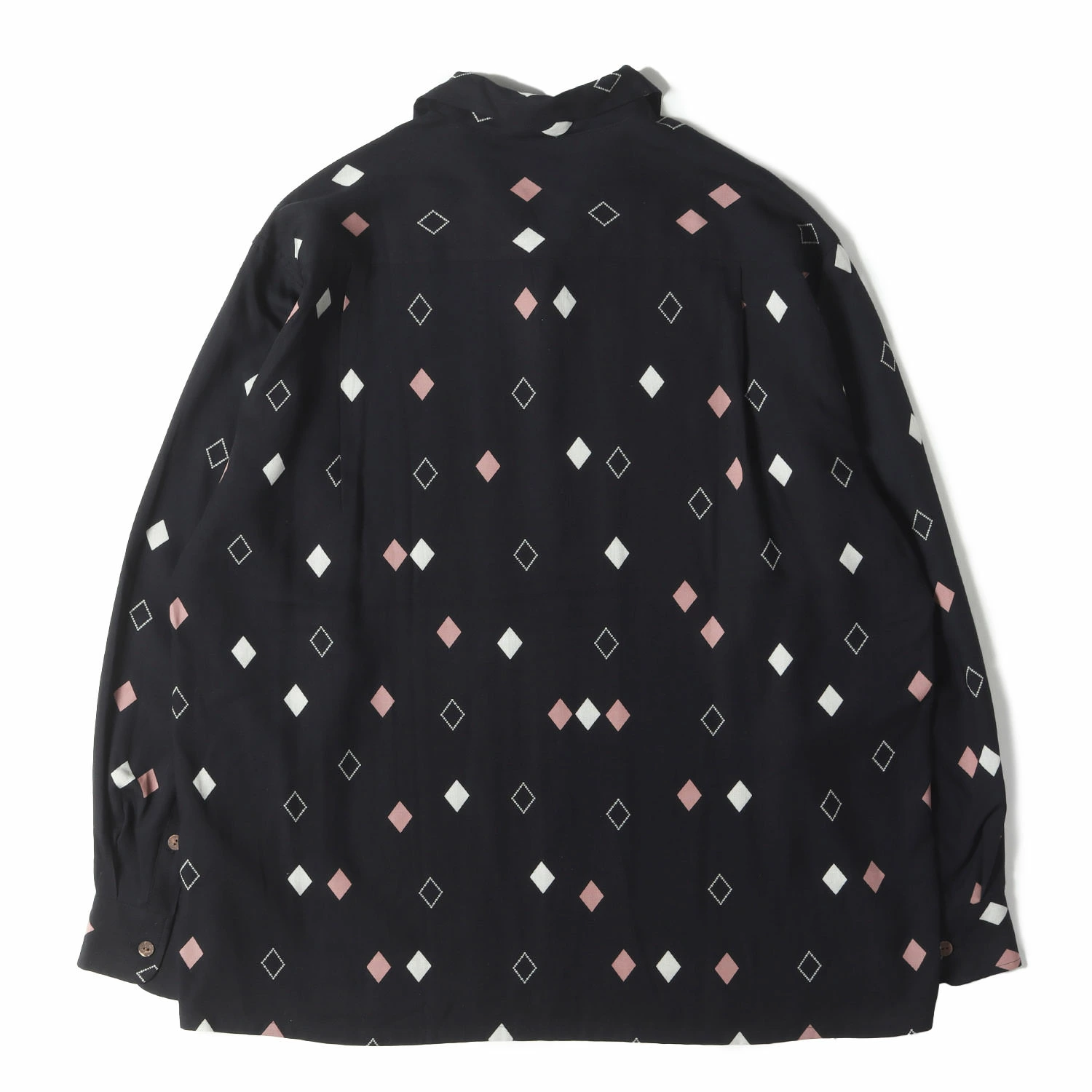 | 商品説明 | 50年代テイストなダイヤモンド柄をあしらったオープンカラーシャツです。ゆとりのあるルーズシルエットで仕上げた一枚になります。 |