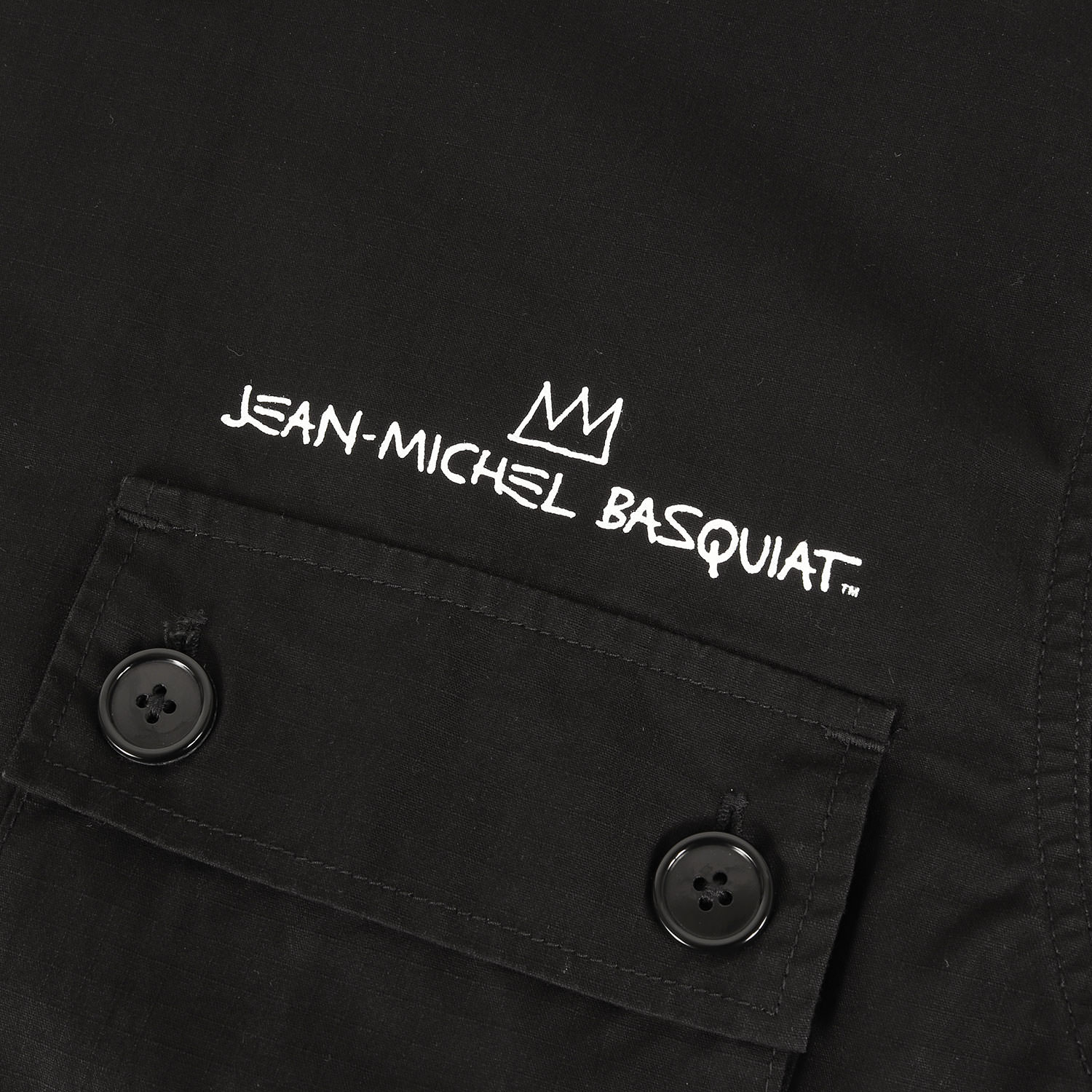 | 商品説明 | ニューヨークを代表するアーティスト“Jean-Michel Basquiat(ジャン=ミシェル・バスキア)”とコラボしたリップストップ生地のアーミーシャツです。身幅の広いルーズシルエットで仕上げた一枚になります。 |