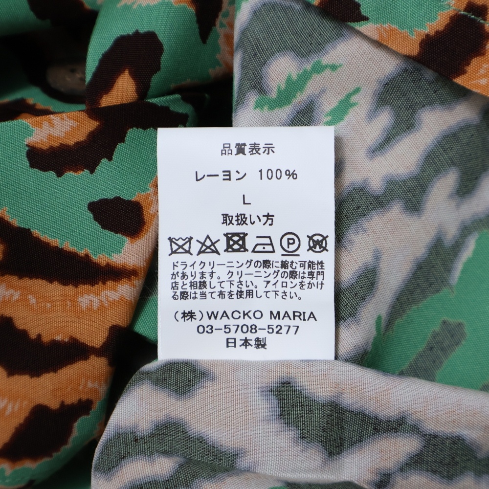 ■商品情報[商品番号]3725I140011[ブランド]WACKO MARIA(ワコマリア)[モデル]HAWAIAN SHIRT L/S レオパード レーヨン 長袖シャツ グリーン/ブラウン[サイズ]平置き採寸 着丈:77センチ 身幅:60センチ 肩幅:53センチ 袖丈:61センチ表記サイズ:L■状態・コンディション[状態ランク]ランク A若干の使用感有り