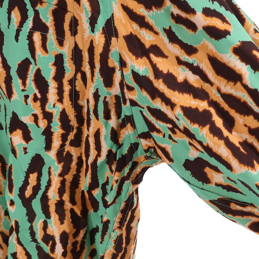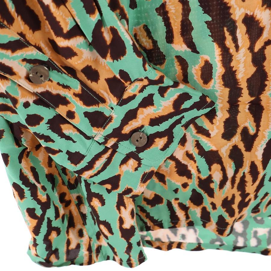 Wako Maria Hawaiian Shirt, Leopard Print Rayon Long Sleeve Shirt, Green/Brown, Size L, Green/Brown