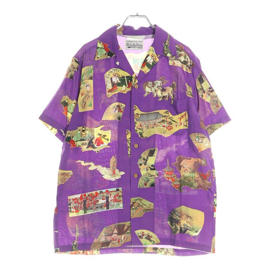 [モデル]JAPAN HAWAIIAN SHIRT ジャパン 総柄 開襟 ハワイアンシャツ 半袖シャツ パープル