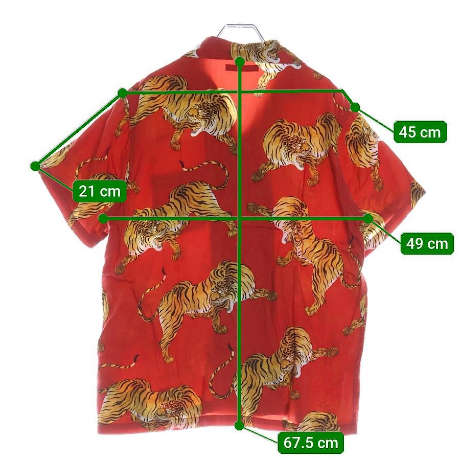 ■商品情報[商品番号]1025G300043[ブランド]WACKO MARIA(ワコマリア)[モデル]× MINEDENIM HAWAIIAN SHIRT S/S 19MND-WM001-17-022 マインデニム タイガープリント 開襟シャツ 半袖シャツ レッド[サイズ]着丈:67.5センチ 身幅:49センチ 肩幅:45センチ 袖丈:21センチ表記サイズ:02■状態・コンディション[状態ランク]ランク B使用感有り全体的に擦れ/ヨレ有り胸ポケットにほつれ有り