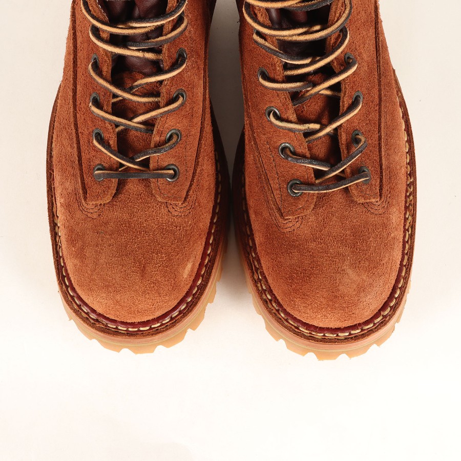 | 商品説明 | ・ラフアウト(スウェード)レザー ・6インチ丈 ・レースアップパターン レーストゥトゥ ・レザーライニング ・Vibram社#100 Hanny Lugソール ・シングルレザーミッドソール ・ロガーヒール ・シングルセラスティックトゥBOX ・ダブルソールステッチ ・ロールドトップ |