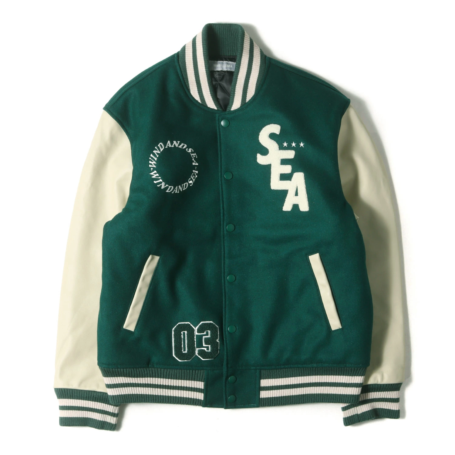 | 商品説明 | 身頃にメルトンウール、袖にカウレザーを使用し、スナップボタンで仕上げた3周年記念スタジャンです。サガラワッペン、チェーンステッチ刺繍をデザインしています。ライナーはキルティング仕様なので保温性も抜群です。 |
