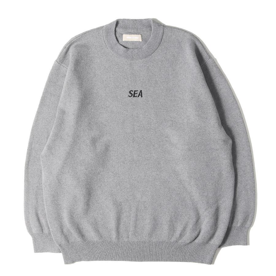 WIND AND SEA Knit Sweater, Gray, Size L | 2024 Autumn/Winter Logo Embroidered Cotton/Cashmere/Wool | Long Sleeve Top [Men's] [Pre-owned] [Excellent Condition] [K4616]
