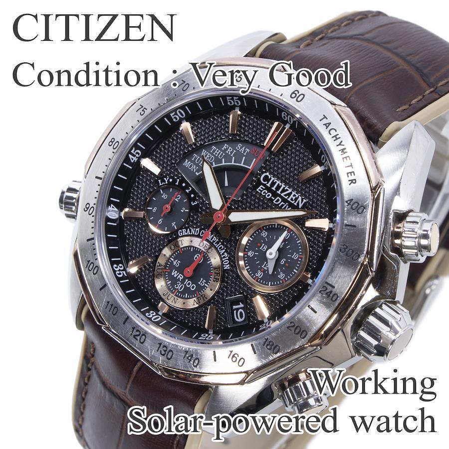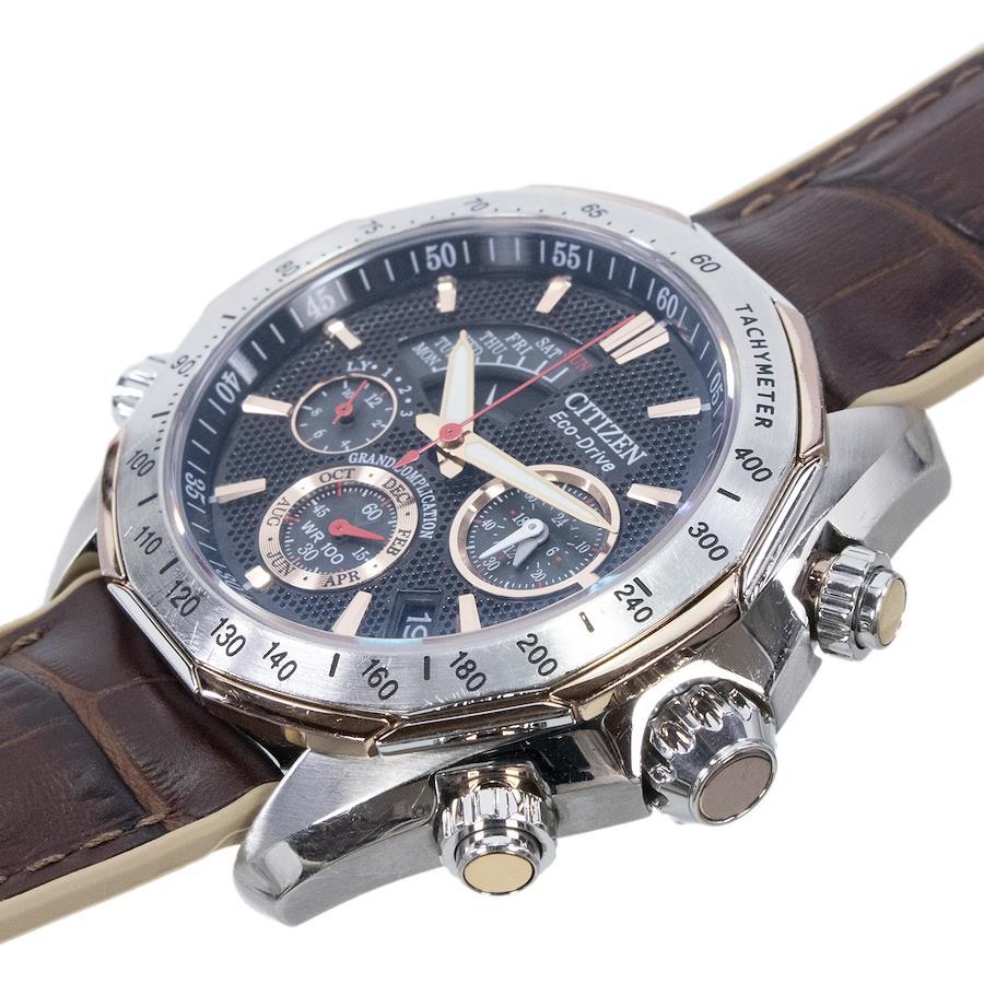 こちらは、緻密に計算された多機能な文字盤が男心をくすぐる、シチズンのグランドコンプリケーション・腕時計でございます。