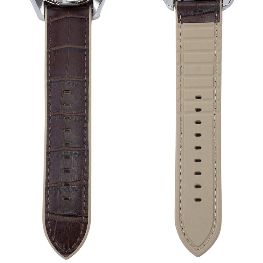クロコダイル型押しの樹脂ベルトが、高級感とスポーティな魅力を同時に演出いたします。