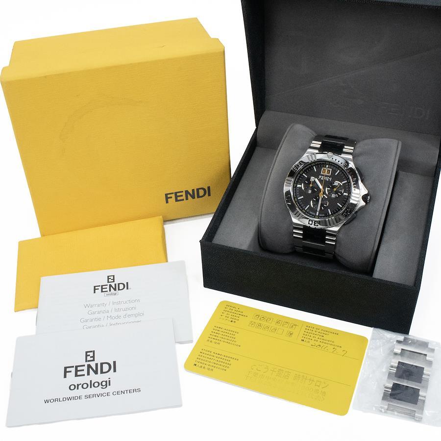 特徴:クロノグラフ・ビッグデイト・FFロゴ・マーク・大きい・大型・重厚感・スモセコ・メタルブレスレット・ハイブランド・珍しい・人気・おしゃれ