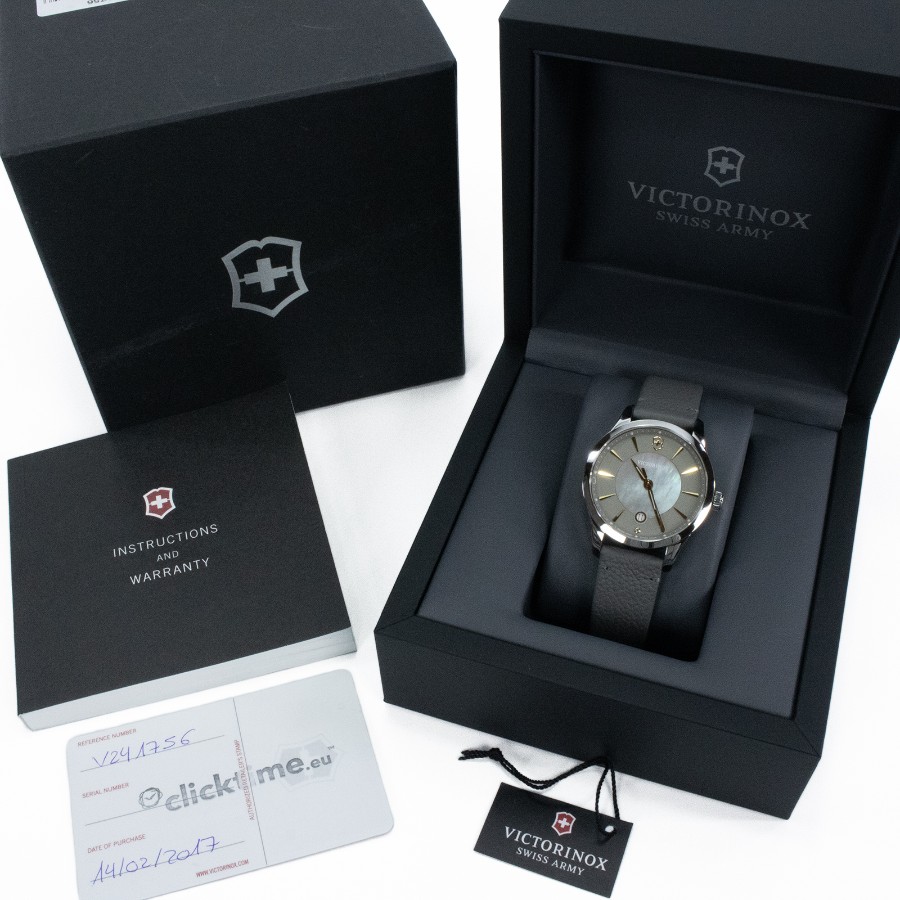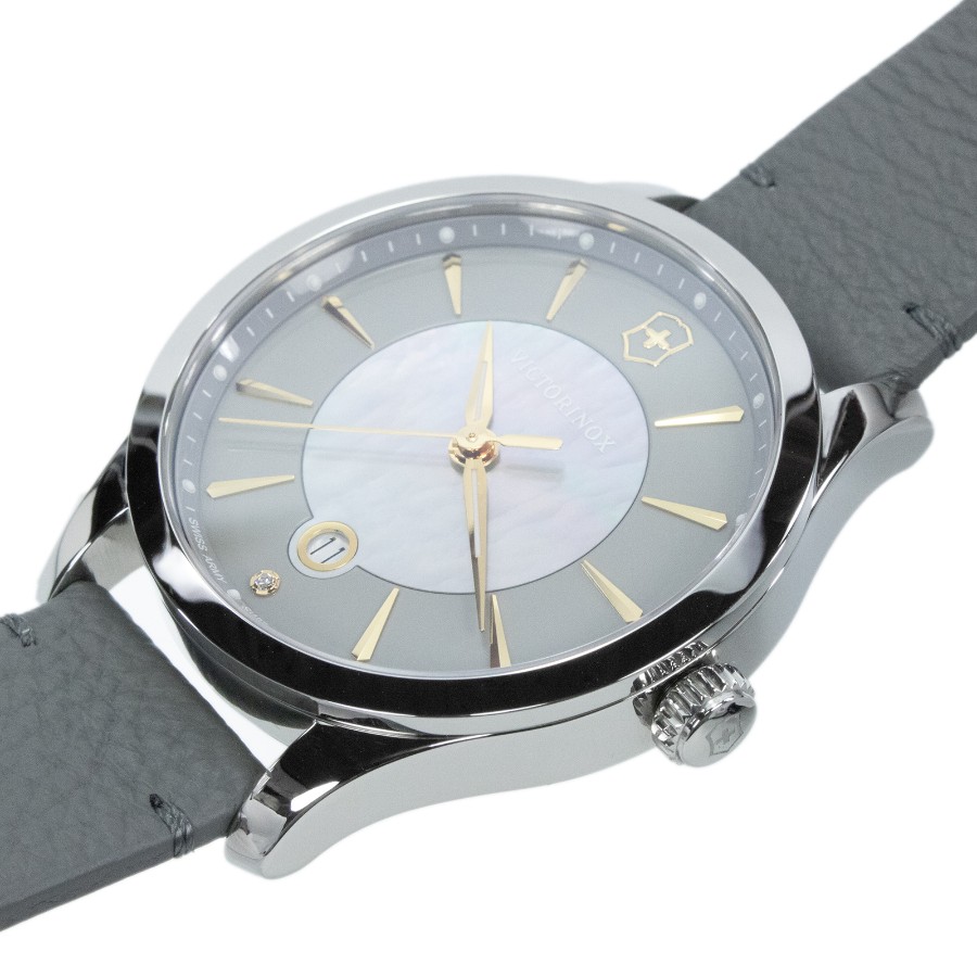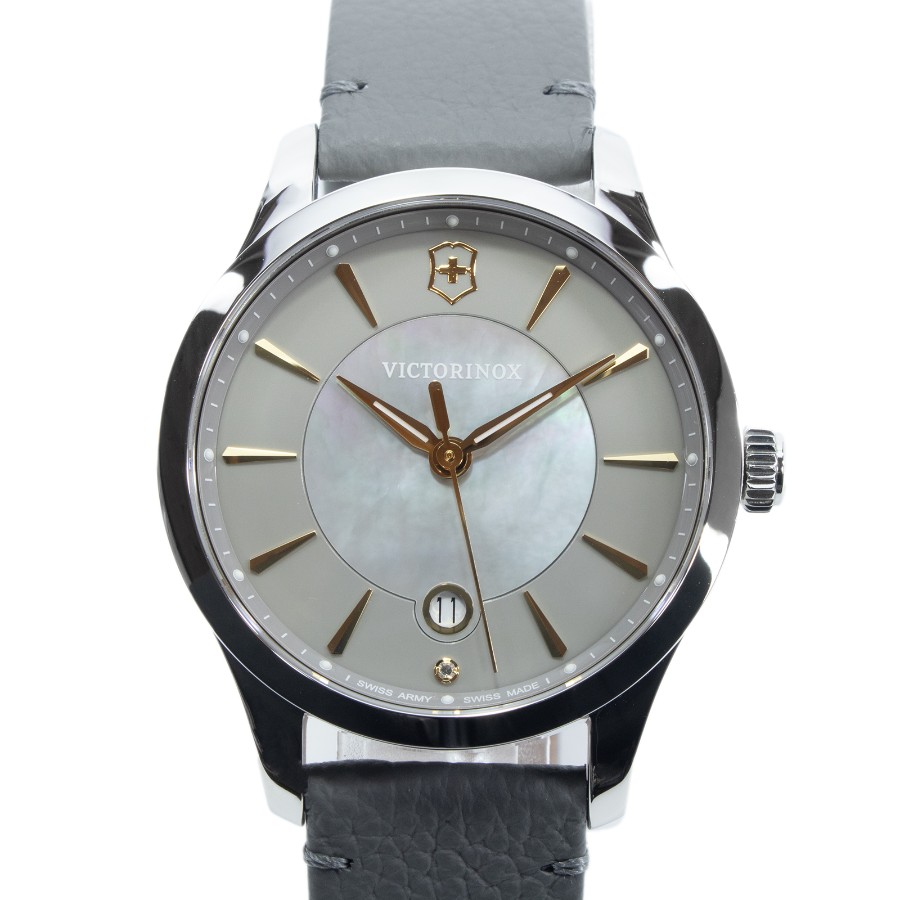 こちらは、洗練されたグレーカラーが知的な大人の魅力を引き立てる、ビクトリノックスのアライアンス・腕時計でございます。