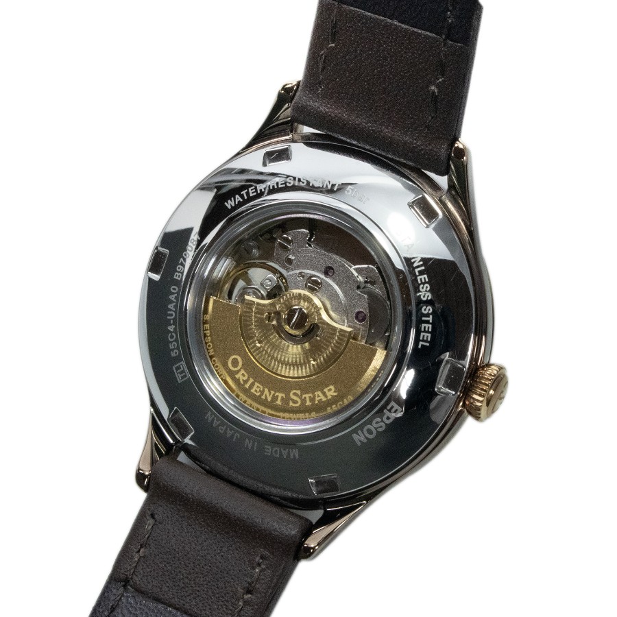 こちらは、大人の余裕と気品を同時に引き立てる、オリエントスターのクラシック セミスケルトン・腕時計でございます。