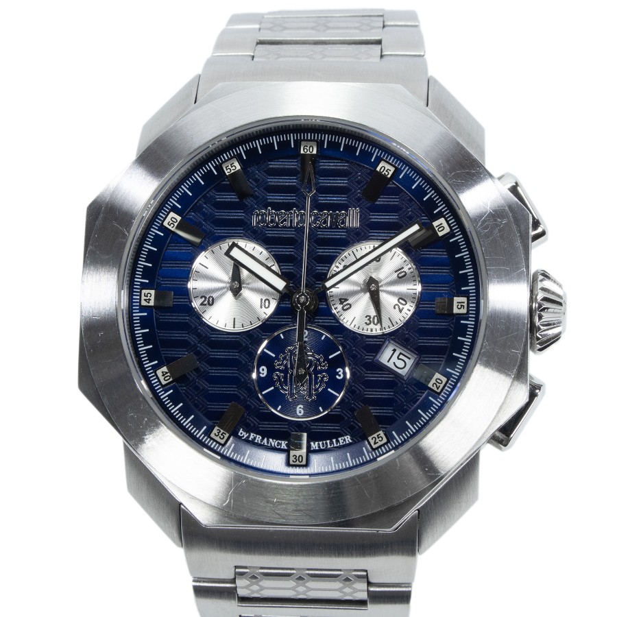 こちらは、ダイナミックなオクタゴンケースと洗練されたデザインが見事に融合した、ロベルトカヴァリバイフランクミュラーの腕時計でございます。