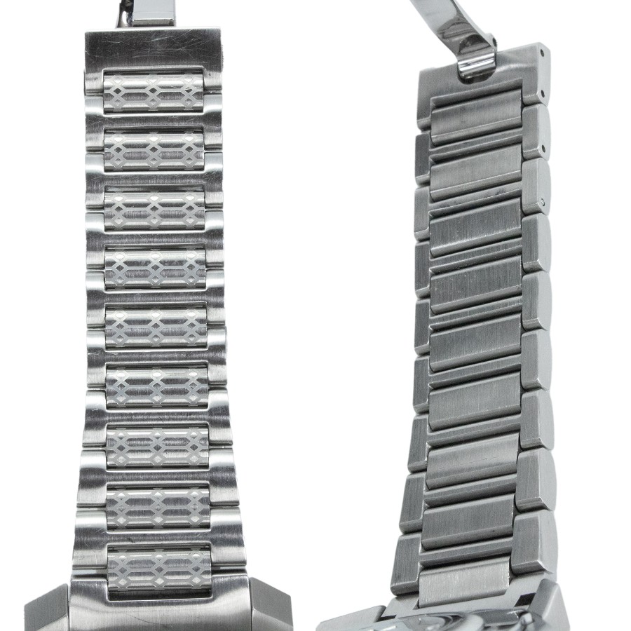 堅牢なシルバーのメタルブレスレットが手首に心地よくフィットし、快適な着け心地を実現しております。