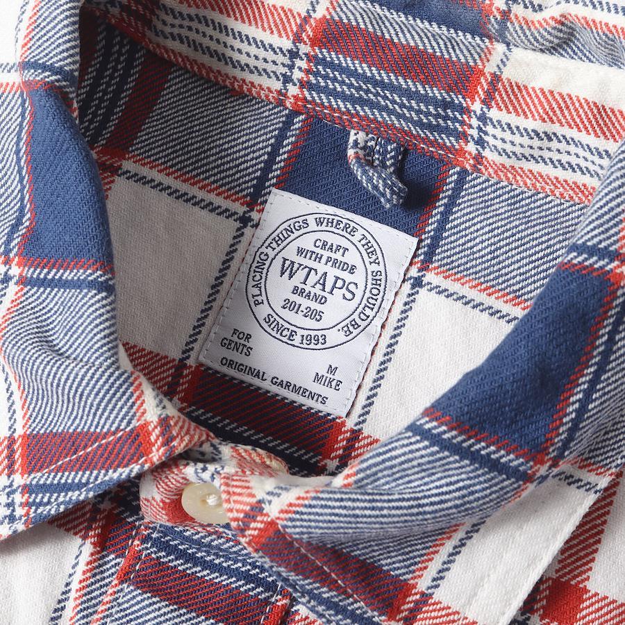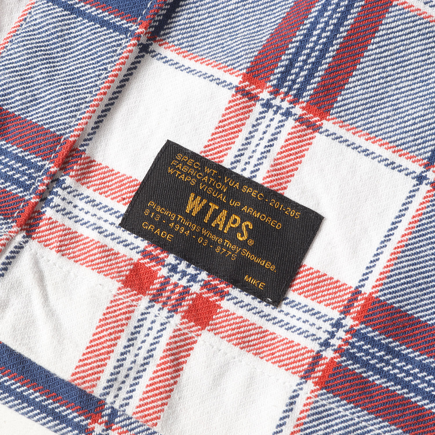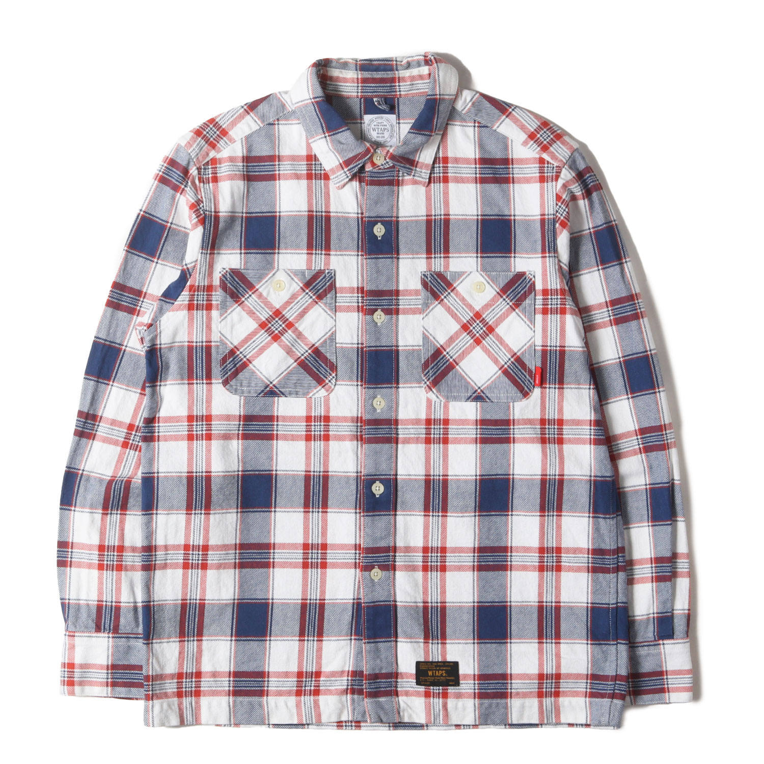 WTAPS Double Taps Shirt, Navy, Red, and White, Size: M | Check Flannel Shirt (UNION LS 01) | Men's Casual Long Sleeve Shirt (Pre-owned) [K4615]