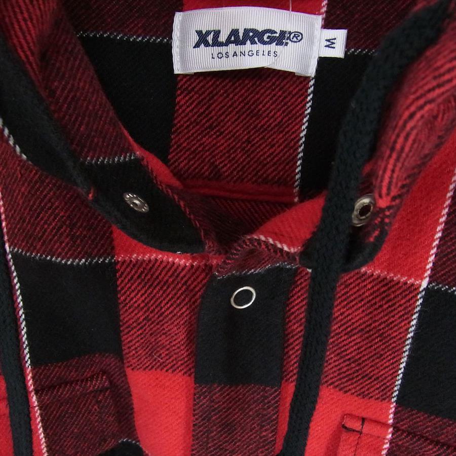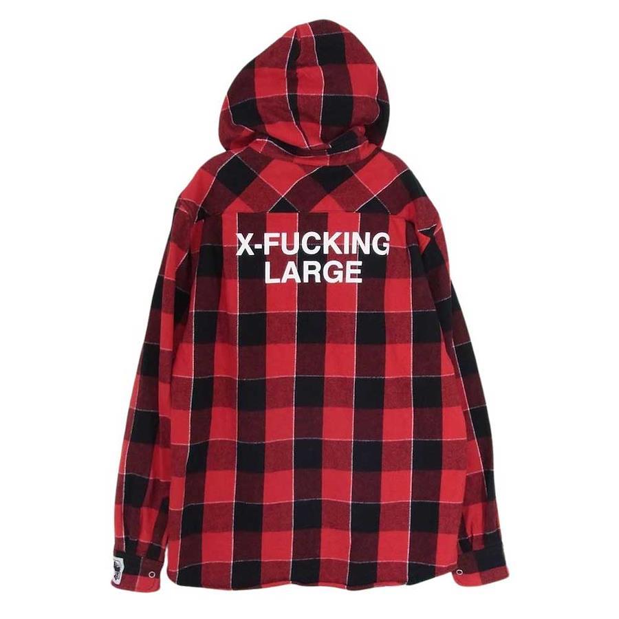 X-LARGE 1164402 Back Logo Print Check Pattern Flannel Hoodie Hoodie Red M Men's [Used]