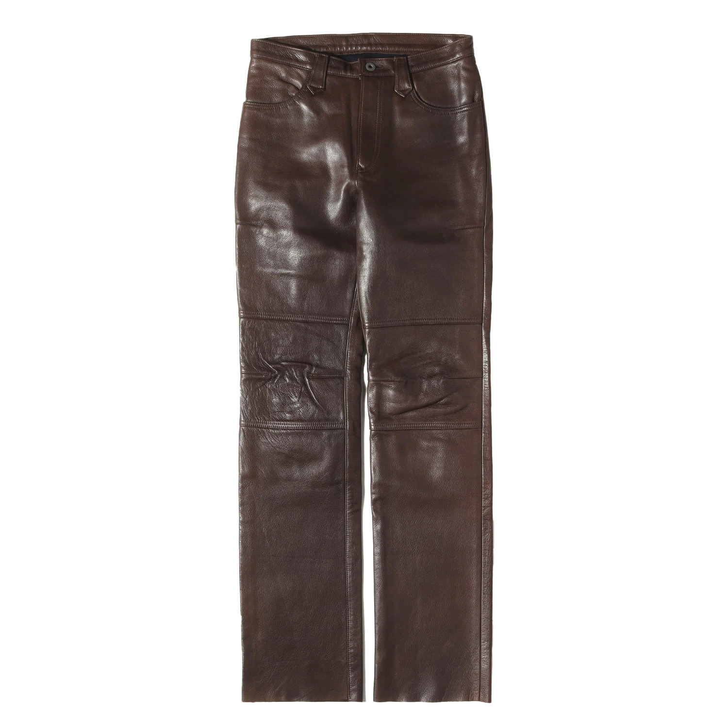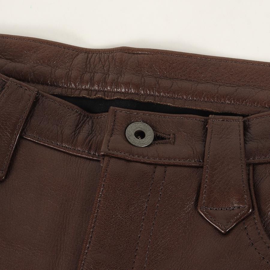 | 商品説明 | ・履きやすいソフトなオイルステアハイドレザー ・ストレッチカットソー素材の裏地付き ・ジッパーフライ ・ストレートシルエット ・膝立体裁断 |