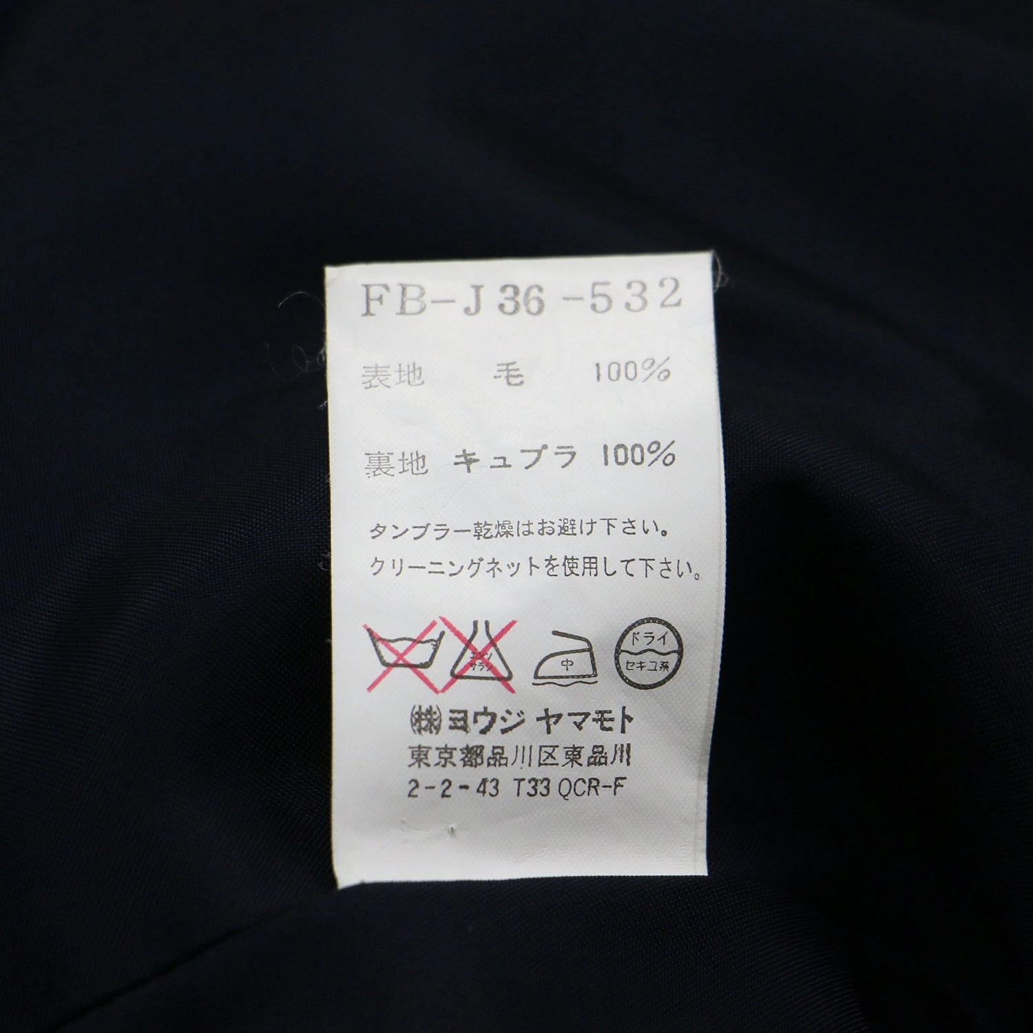 | 素材 | 表地 ウール 100% 裏地 キュプラ 100% |
