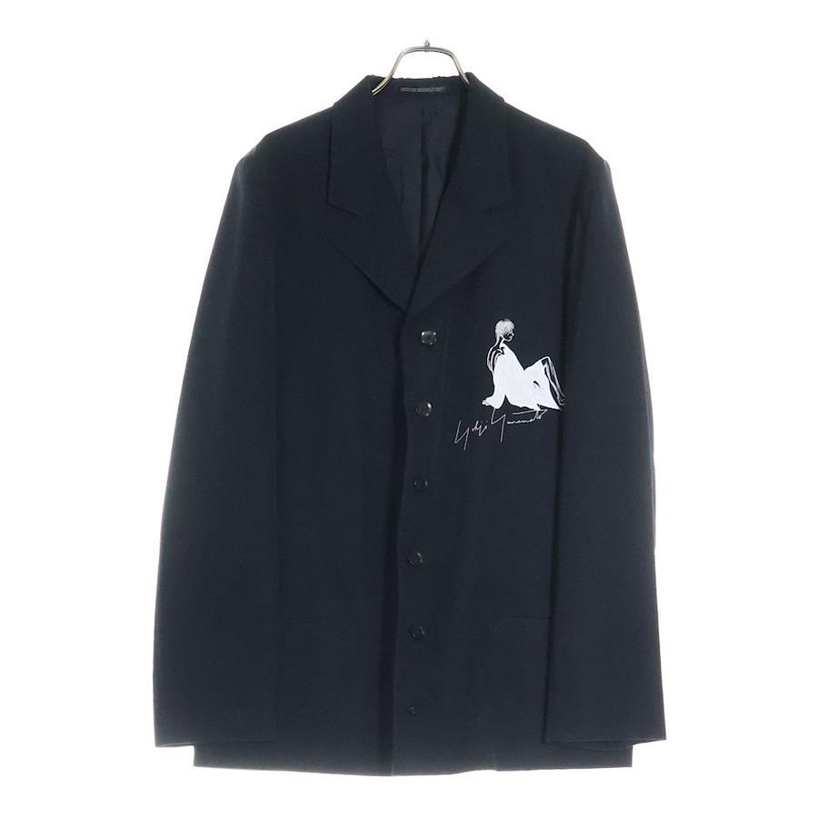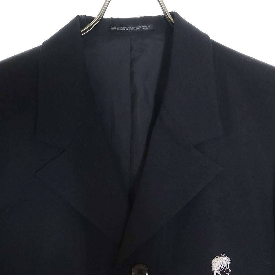 [モデル]02SS 女優期 フロント刺繍 レインウール ノッチドラペル 5B シングル テーラードジャケット ブラック HE-J-63-100
