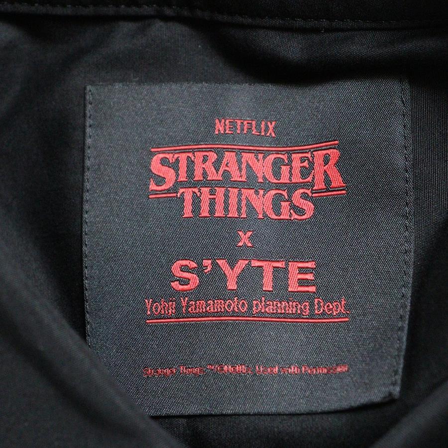[モデル]S'YTE×STRANGER THINGS イラスト パッチワーク 長袖シャツ ブラック UM-B52-080