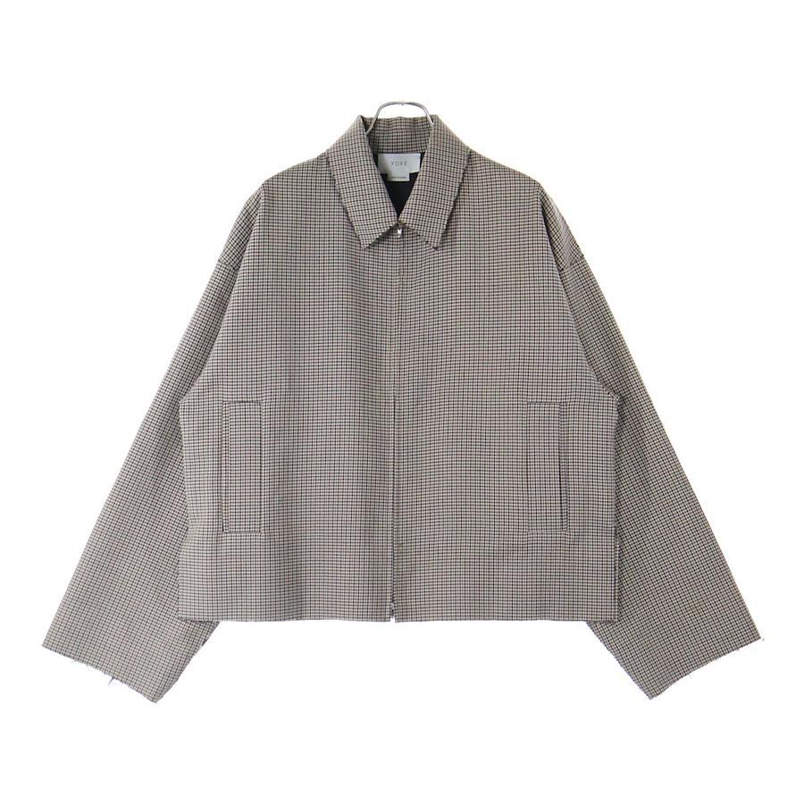 [モデル]19AW CUT-OFF JACKET カットオフ フルジップ チェックジャケット ブラウン YK19AW0054B