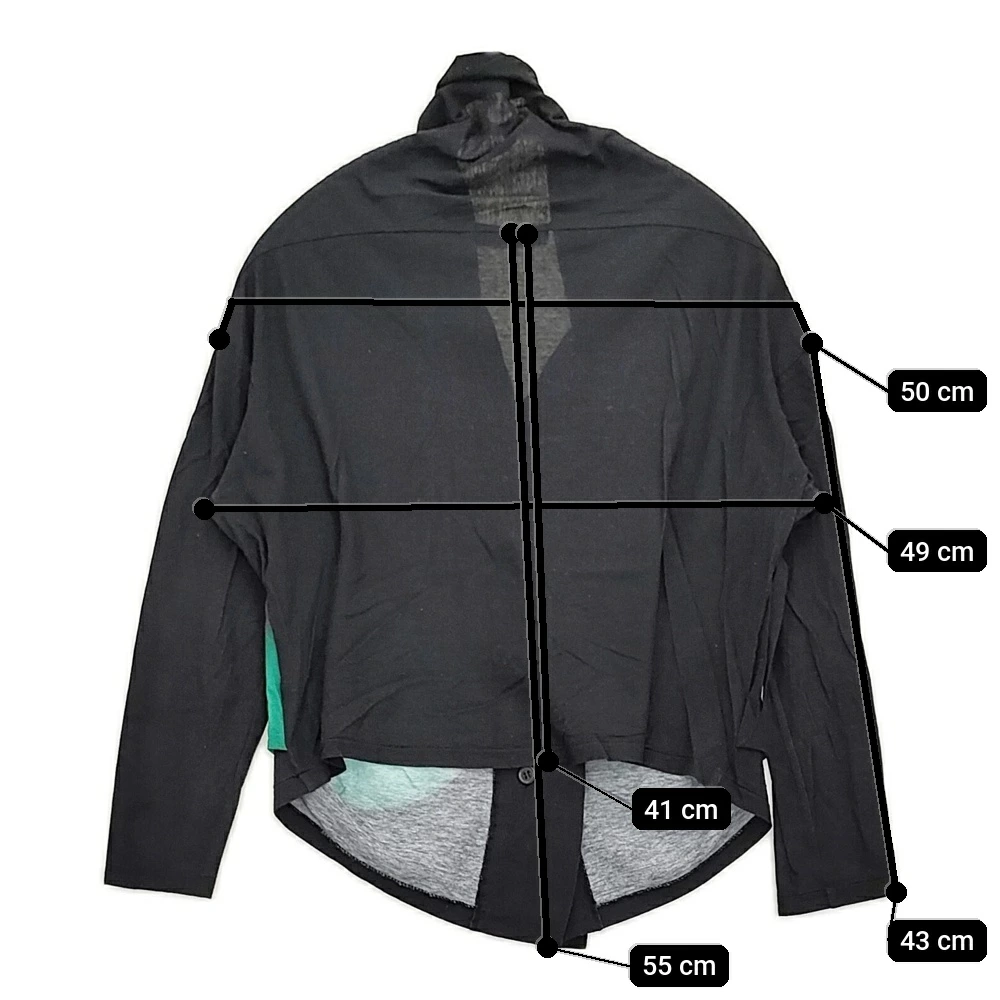 | 実寸サイズ | 肩幅:約50cm 着丈:約55cm 着丈(後ろ):約41cm 身幅:約49cm 袖丈:約43cm ※採寸画像がある商品はハンガーに吊るした状態での計測のため、平置きでの採寸とは差が生じる場合がございます。平置きでの実寸サイズをご希望の場合は、ご購入前に必ずご質問ください。 ※記載以外のサイズが合わないことを理由とした返品はできませんので、 記載部分以外で実寸サイズの気になる箇所があれば必ず購入前にご質問ください。 |