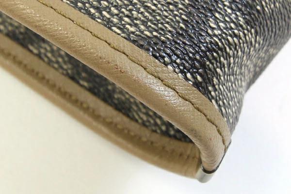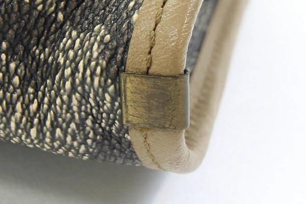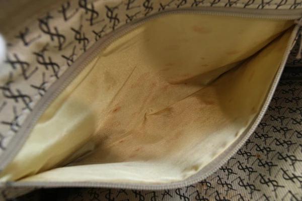 | 状態 | 外側:多少型崩れあり。フチに薄スレ、薄汚れあり。 内側:スレ、汚れあり。 両サイドマチ部分・ファスあーポケット内に茶系染み多数あり。 金具:スレ、色落ちあり。 ※収納臭あり。 |