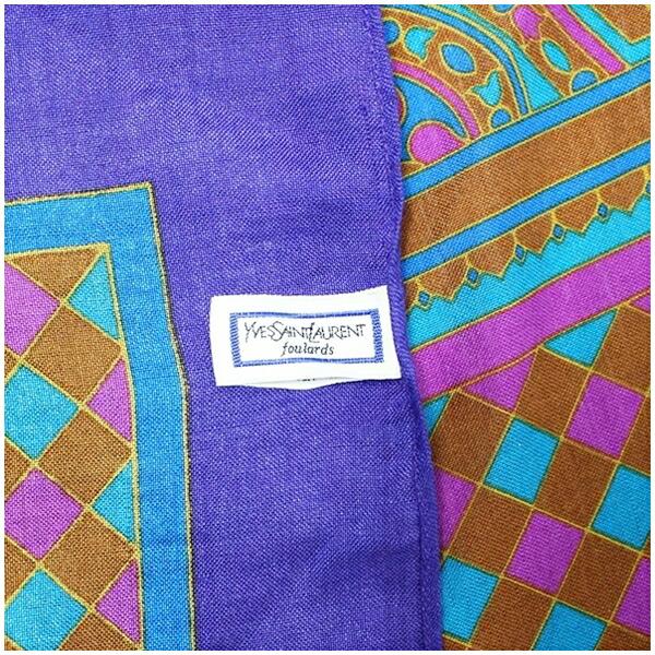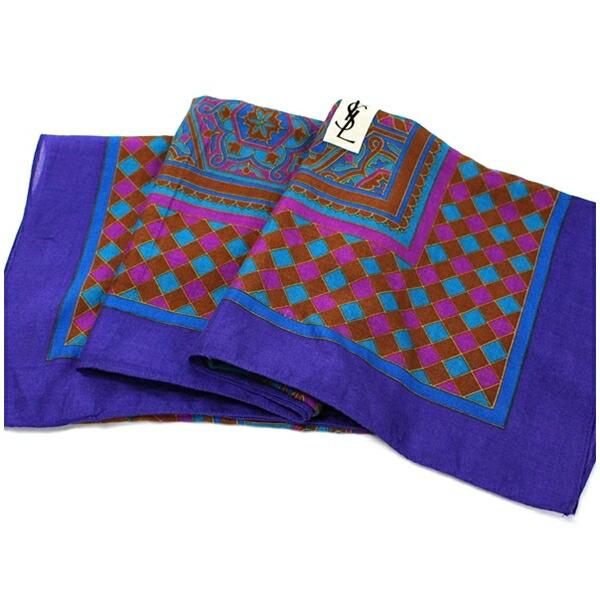 商品名イヴサンローラン ウール シルク 大判スカーフ パープル×ブルー 中古 Aランク YVES SAINT LAURENT