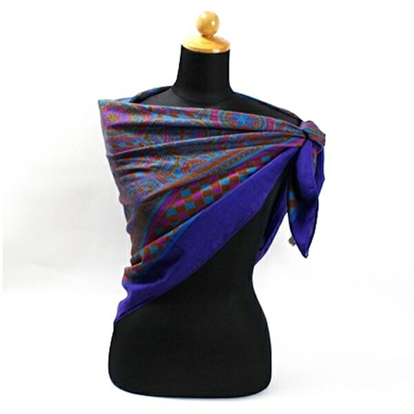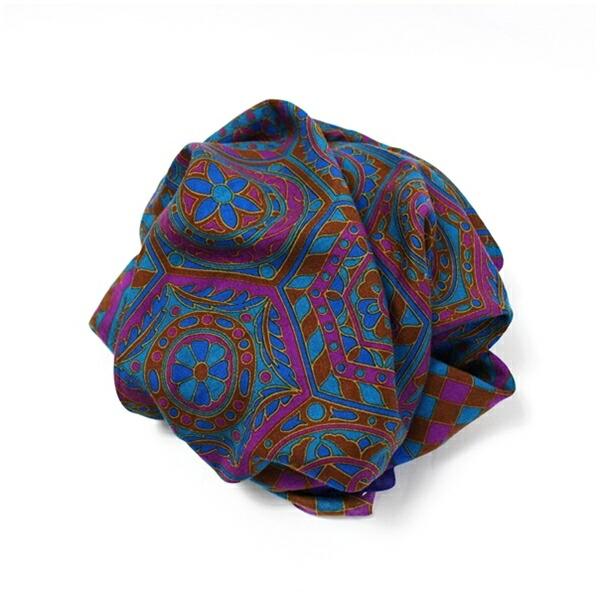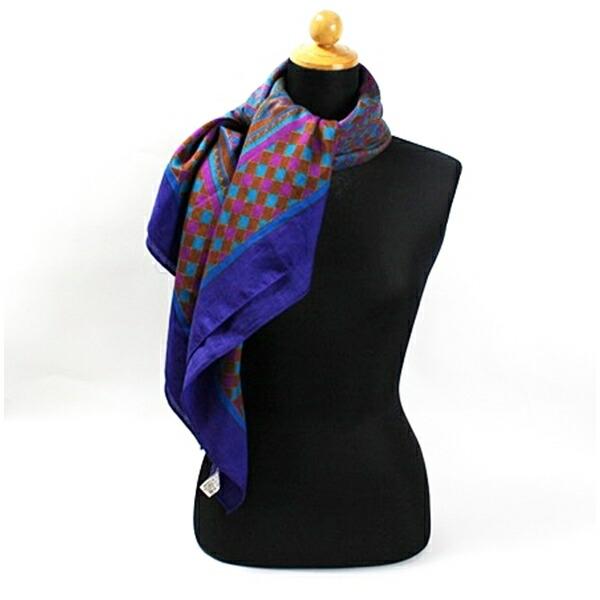 イヴサンローラン ウール シルク 大判スカーフ パープル×ブルー 中古 Aランク YVES SAINT LAURENT | レディース 女性
