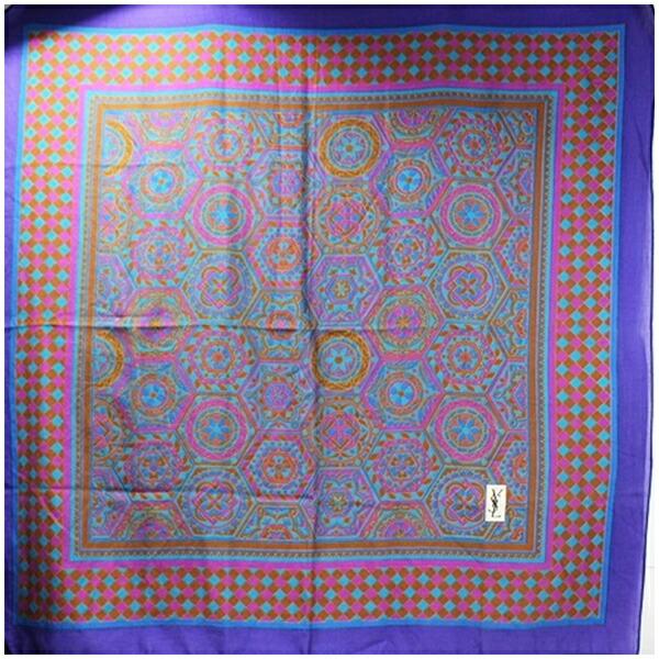 商品名 | イヴサンローラン ウール シルク 大判スカーフ パープル×ブルー 中古 Aランク YVES SAINT LAURENT |